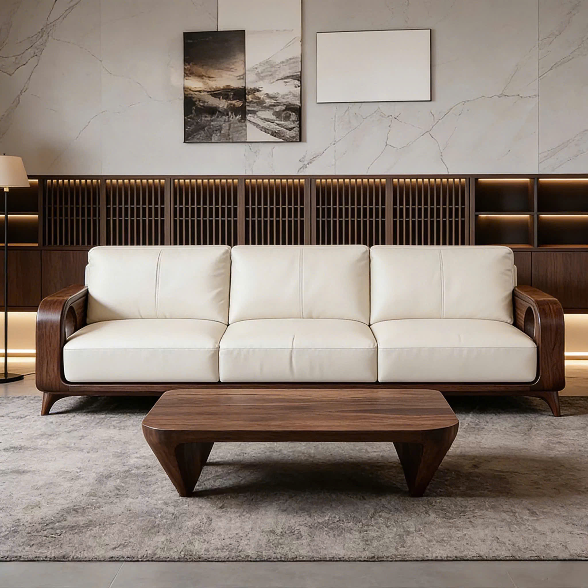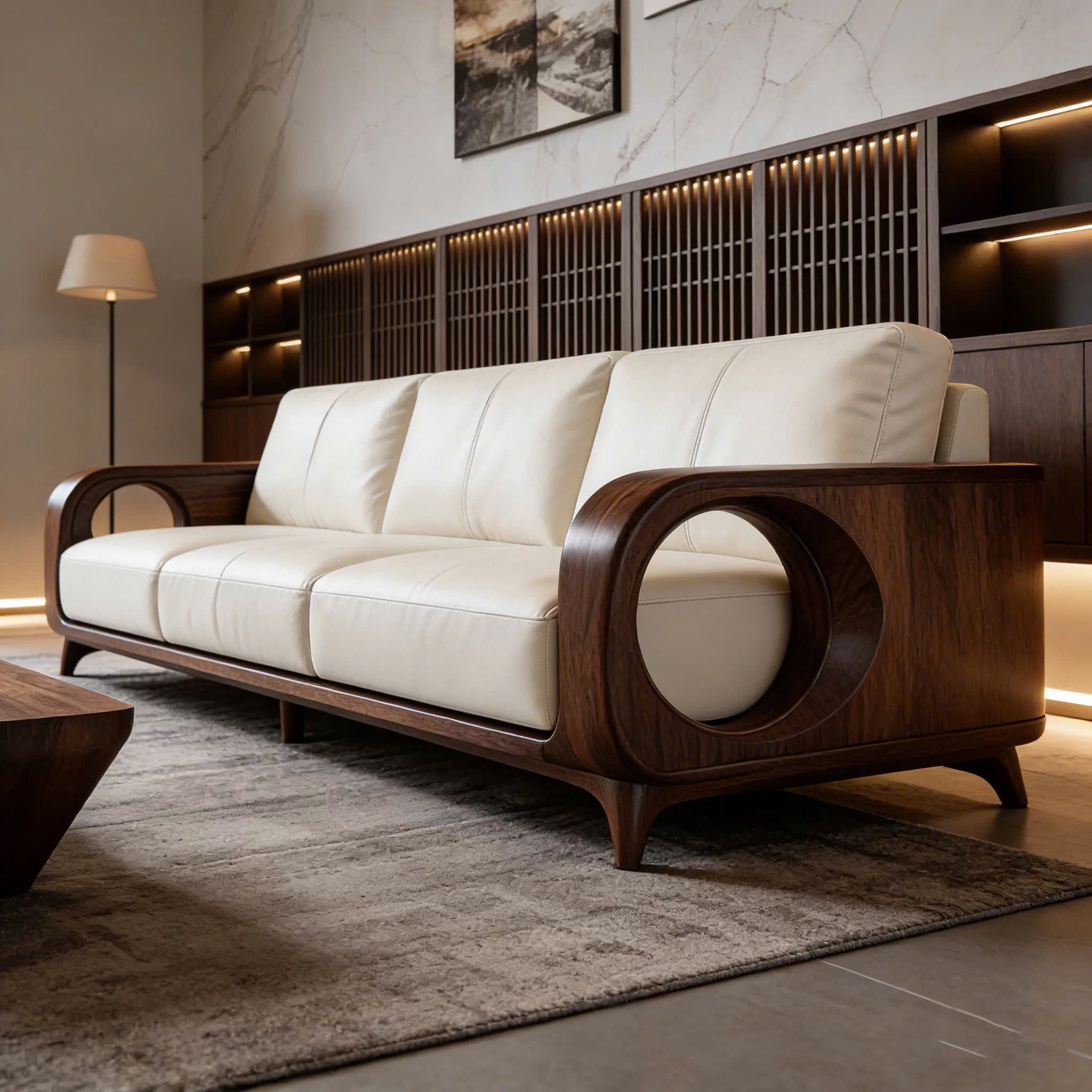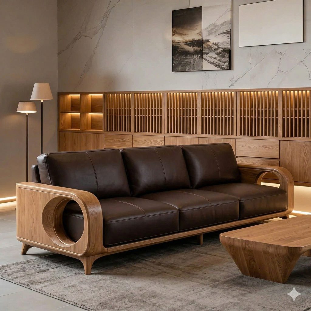 Sofa Gỗ Tự Nhiên VS99 Cao Cấp – Sofa Phòng Khách Khung Gỗ Uốn Cong Sang Trọng, Đệm Da/Nỉ Êm Ái Phong Cách Hiện Đại