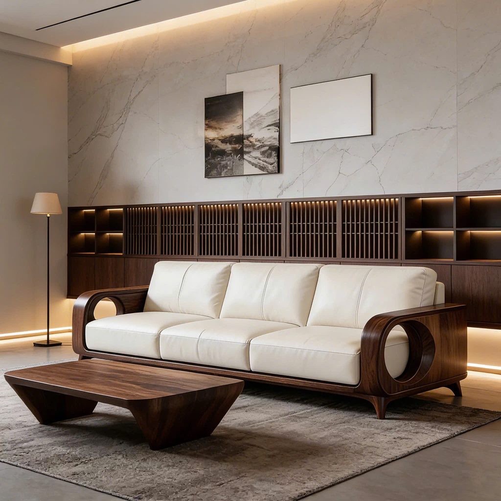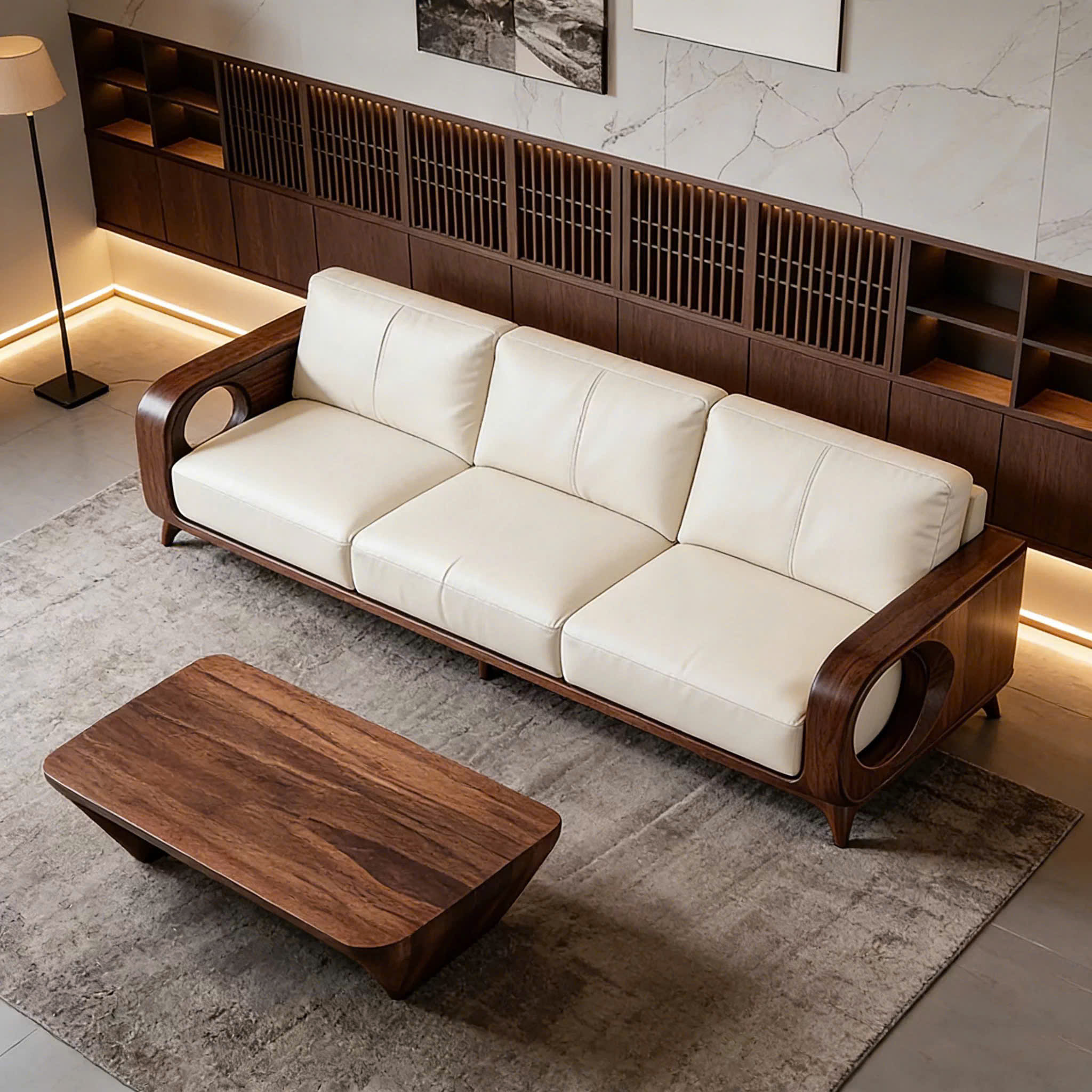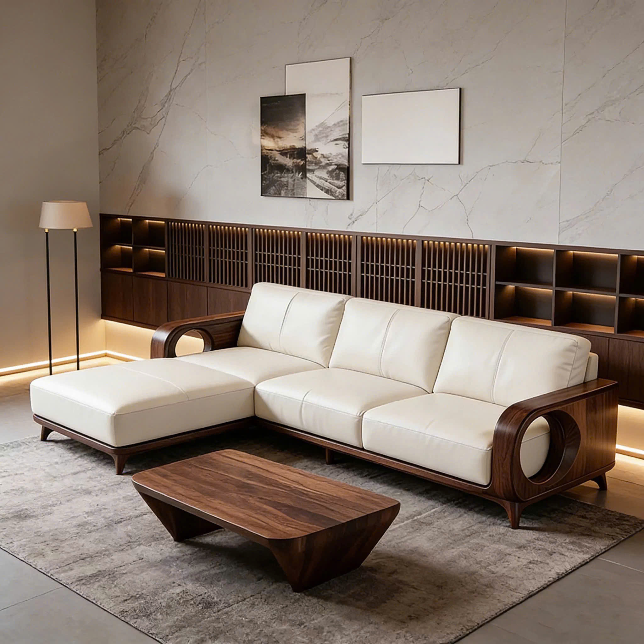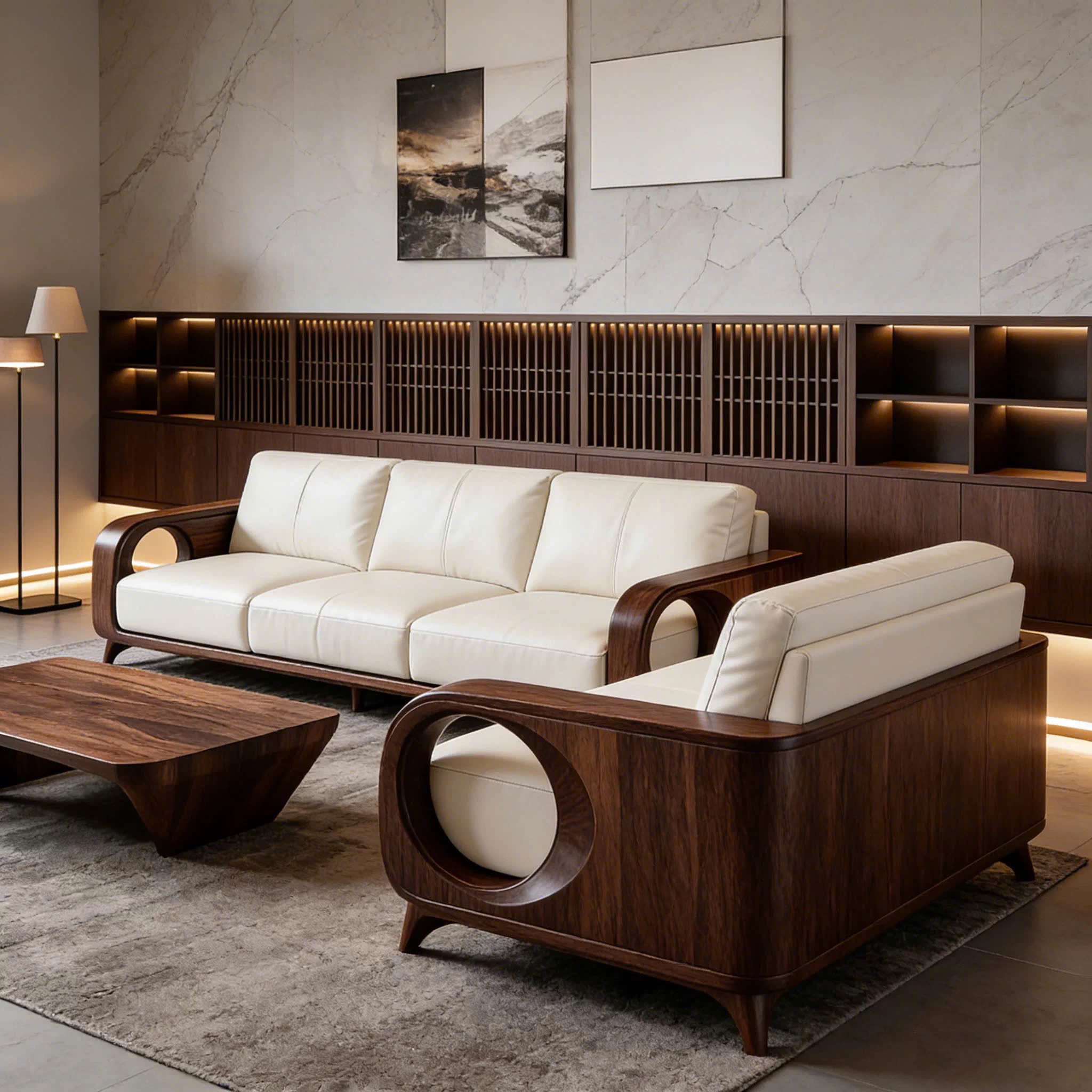 Sofa Gỗ Tự Nhiên VS99 Cao Cấp – Sofa Phòng Khách Khung Gỗ Uốn Cong Sang Trọng, Đệm Da/Nỉ Êm Ái Phong Cách Hiện Đại