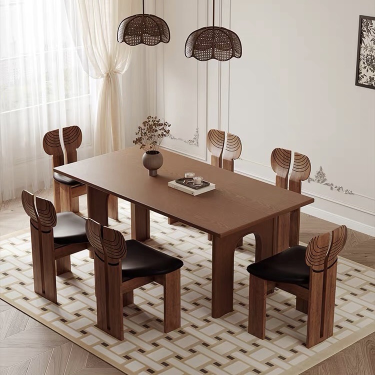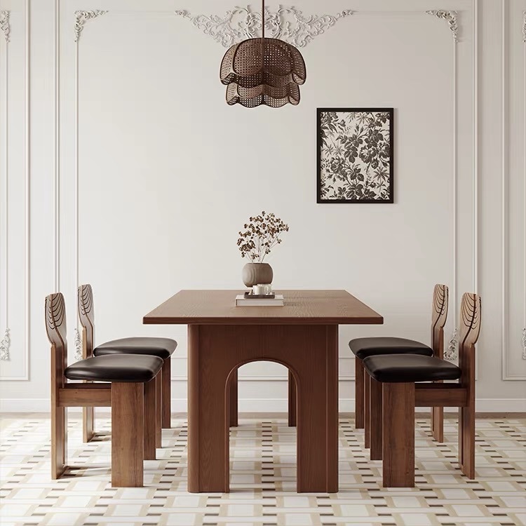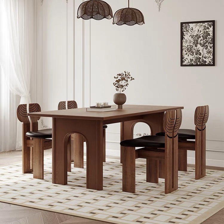 Thiết kế 2 chân trụ lớn giúp bàn đứng vững, chịu lực tốt, đồng thời tạo điểm nhấn khác biệt so với các mẫu bàn truyền thống. Các chi tiết gỗ được gia công tỉ mỉ, mang hơi hướng phong cách Modern Art Decor, phù hợp với những không gian yêu cầu tính thẩm mỹ cao như phòng khách, phòng ăn, studio hoặc showroom. Tông màu nâu gỗ trầm ấm giúp dễ dàng phối hợp với nhiều phong cách nội thất như hiện đại, tối giản, Japandi hay luxury.