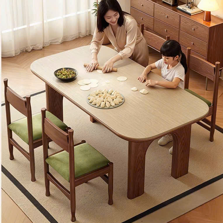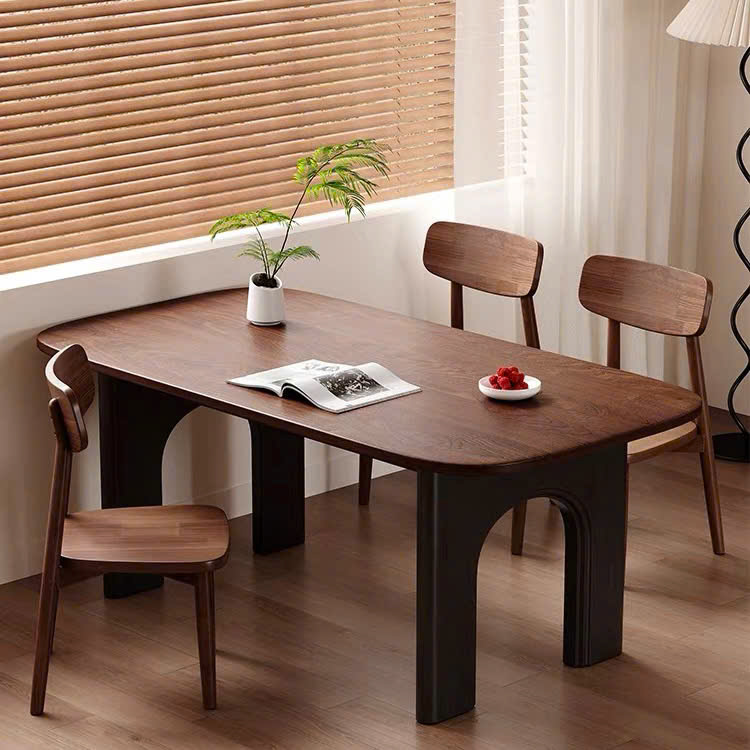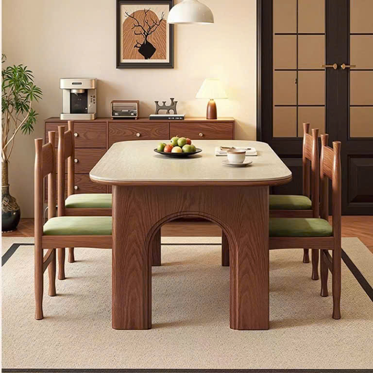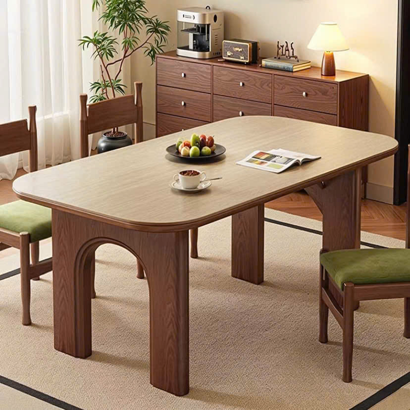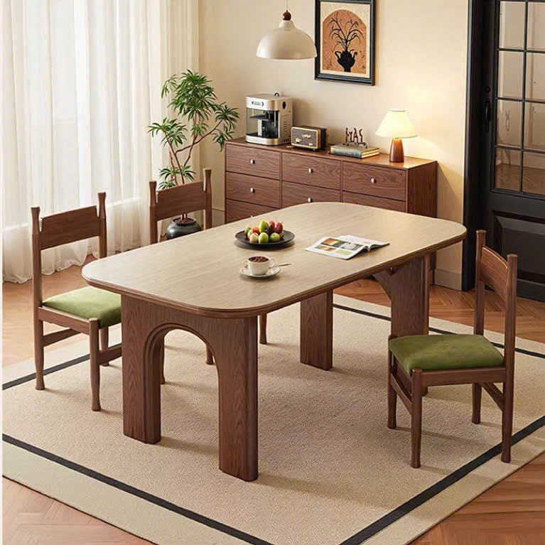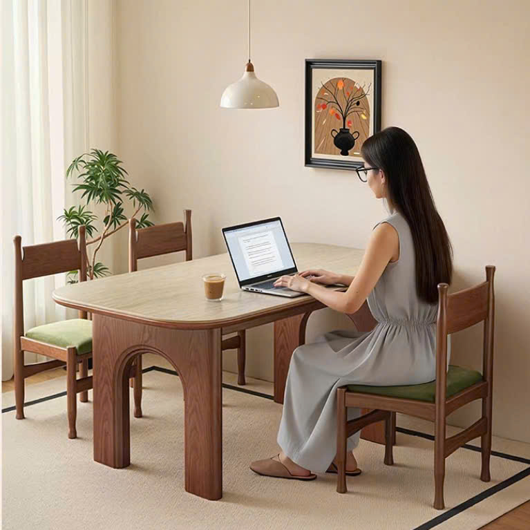 Thiết kế 2 chân trụ lớn giúp bàn đứng vững, chịu lực tốt, đồng thời tạo điểm nhấn khác biệt so với các mẫu bàn truyền thống. Các chi tiết gỗ được gia công tỉ mỉ, mang hơi hướng phong cách Modern Art Decor, phù hợp với những không gian yêu cầu tính thẩm mỹ cao như phòng khách, phòng ăn, studio hoặc showroom. Tông màu nâu gỗ trầm ấm giúp dễ dàng phối hợp với nhiều phong cách nội thất như hiện đại, tối giản, Japandi hay luxury.