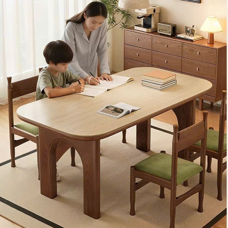 Bàn gỗ VBA41 gây ấn tượng mạnh với thiết kế chân trụ dáng vòm độc đáo kết hợp các đường nét chạy dọc tinh xảo, mang đến vẻ đẹp vừa hiện đại vừa nghệ thuật cho không gian sống. Sản phẩm được chế tác từ gỗ tự nhiên cao cấp, đảm bảo độ bền chắc, vân gỗ đẹp và khả năng sử dụng lâu dài. Mặt bàn hình chữ nhật bo cong mềm mại không chỉ tăng tính thẩm mỹ mà còn tạo cảm giác an toàn, thân thiện khi sử dụng trong gia đình.
