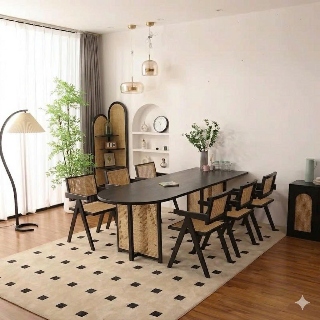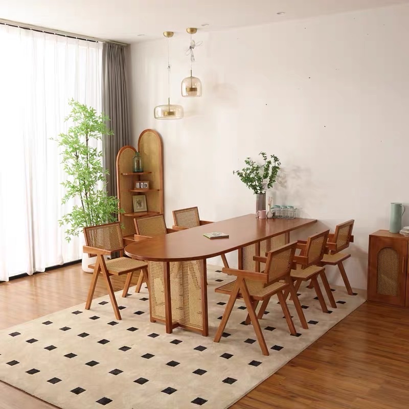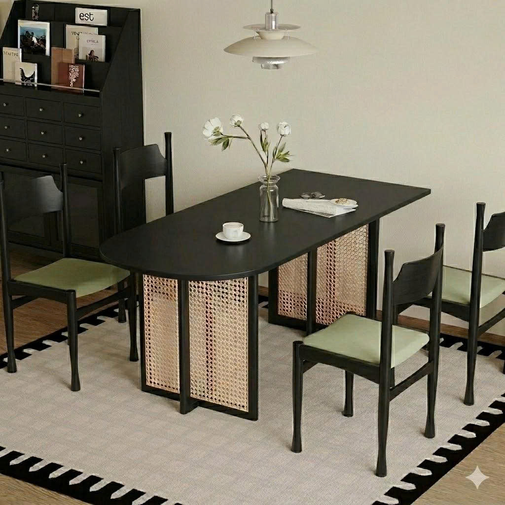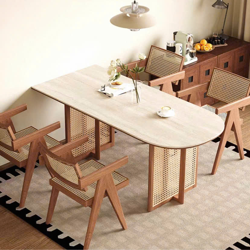 Bàn Ăn Gỗ Phối Mây VBA03 Phong Cách Japandi – Bàn Ăn Oval Cao Cấp 4-6 Ghế, Gỗ Tự Nhiên Kết Hợp Mây Đan Tinh Tế
