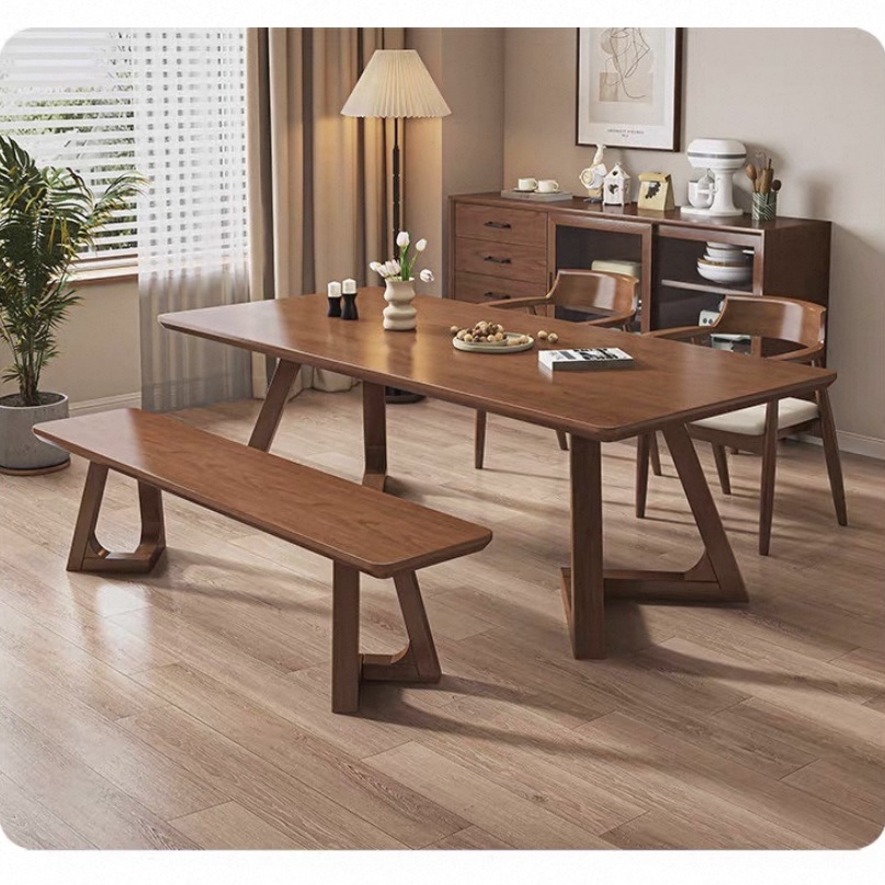 Bàn Ăn Gỗ Tự Nhiên VBA04 Phong Cách Hiện Đại – Bàn Ăn Mặt Gỗ Cao Cấp 4-8 Ghế, Thiết Kế Tối Giản Chân Chữ V Độc Đáo
