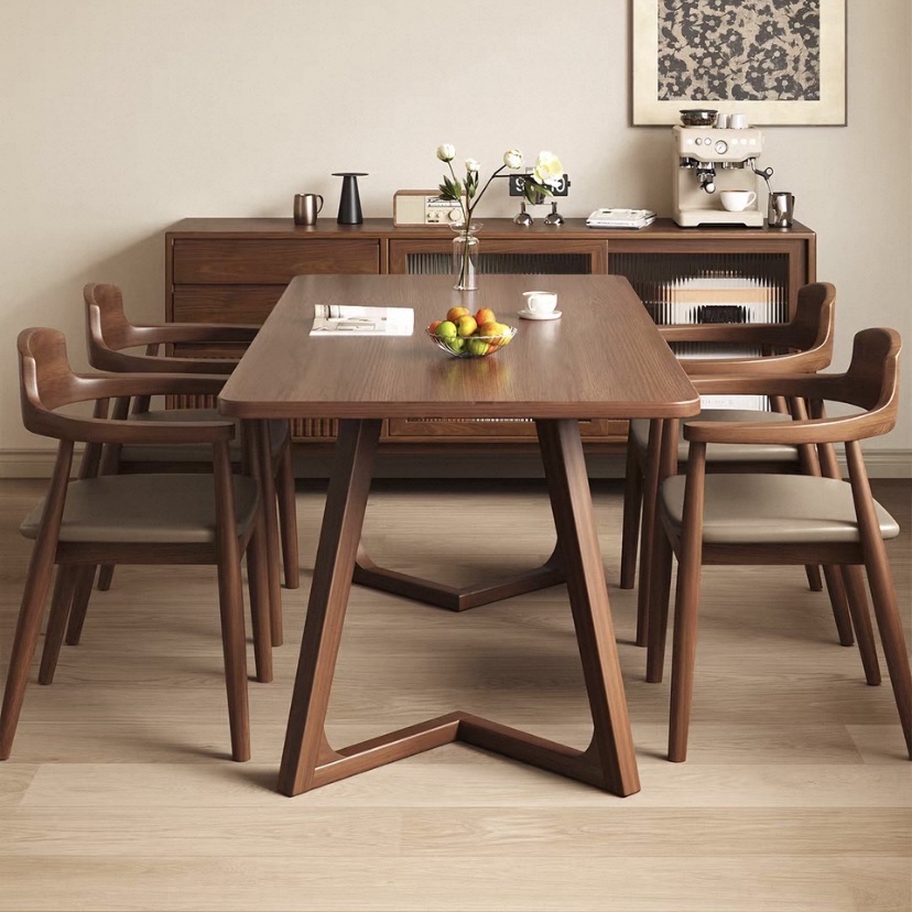 Bàn ăn VBA04 nổi bật với thiết kế hiện đại, tối giản nhưng đầy tinh tế, phù hợp với xu hướng nội thất đương đại. Mặt bàn gỗ tự nhiên nguyên khối kết hợp hệ chân chữ V cách điệu tạo nên tổng thể vững chắc, độc đáo và thu hút ngay từ ánh nhìn đầu tiên.