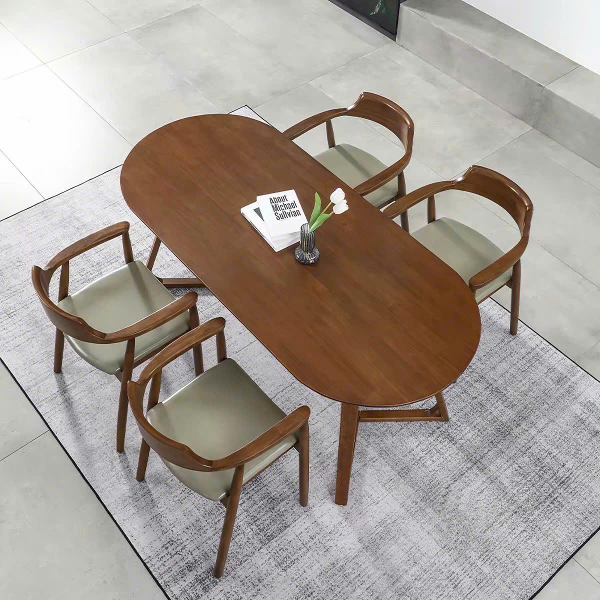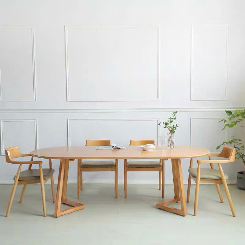 + Bàn mặt oval chân thẳng, mặt gỗ