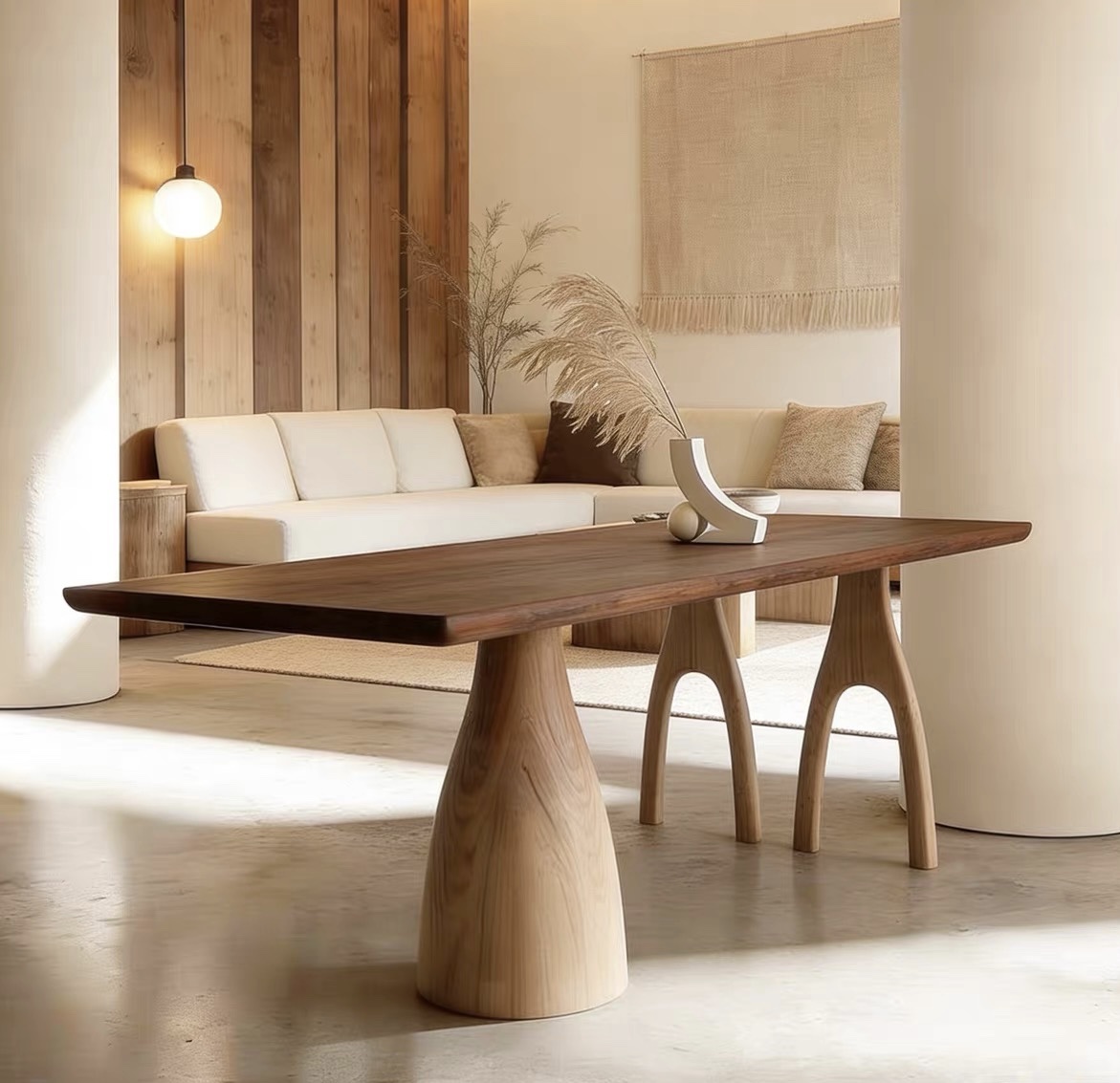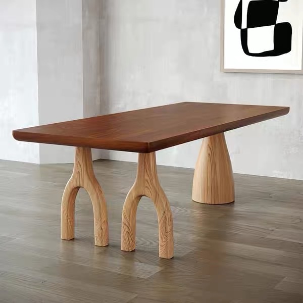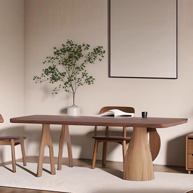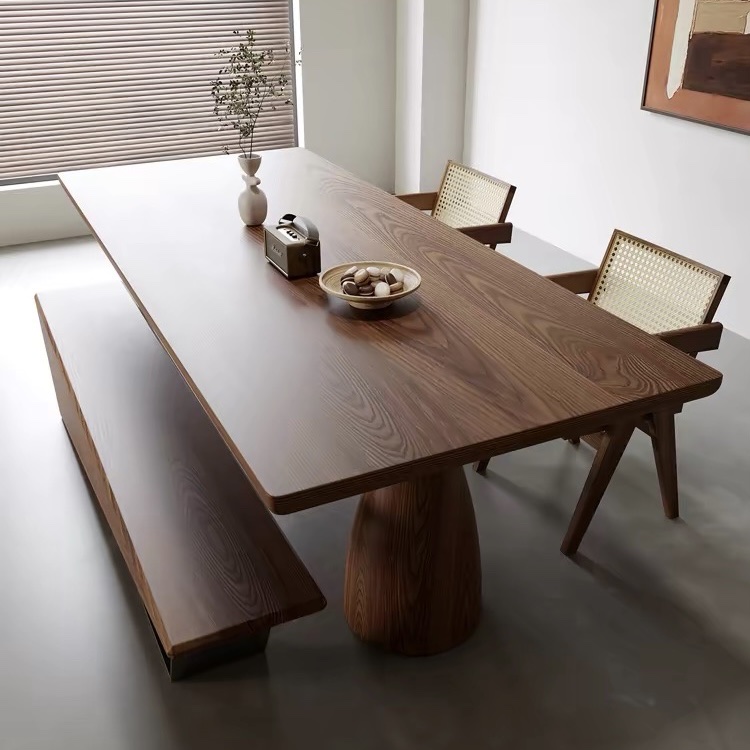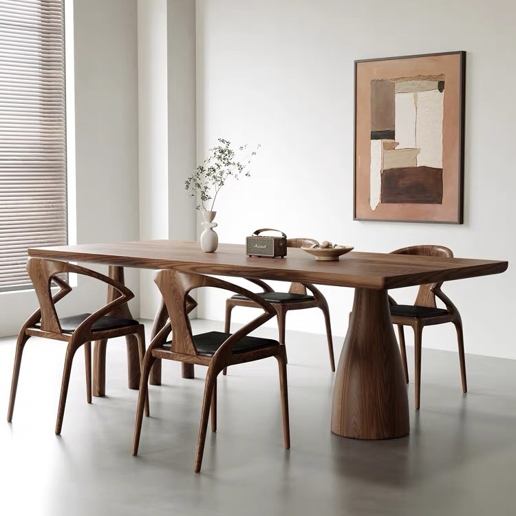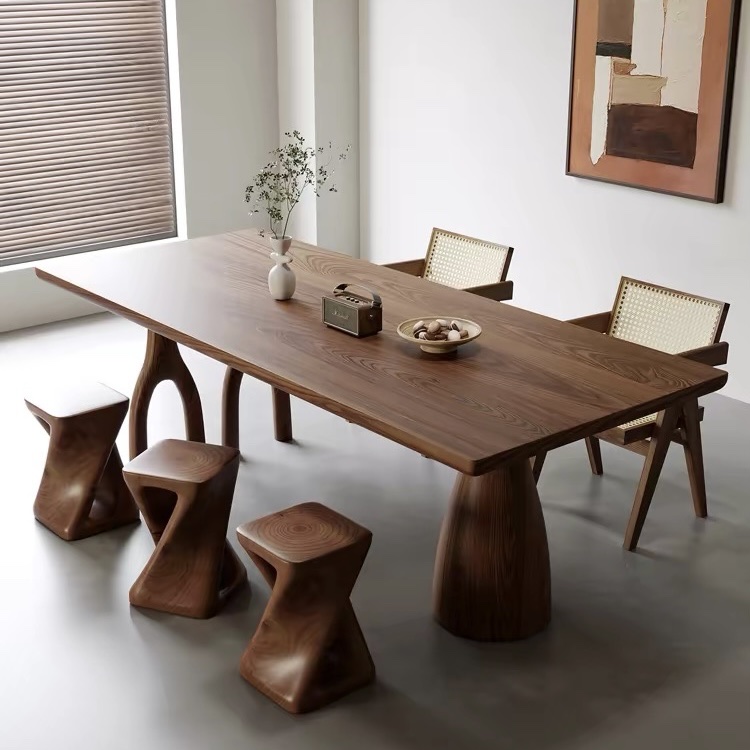 Bàn Ăn Dài Gỗ Tự Nhiên VBA36 Phong Cách Japanfi Hiện Đại – Bàn Ăn Mặt Gỗ Cao Cấp 4-8 Ghế, Thiết Kế Tối Giản 3 Chân Nghệ Thuật kết hợp Hoa Văn Độc Đáo