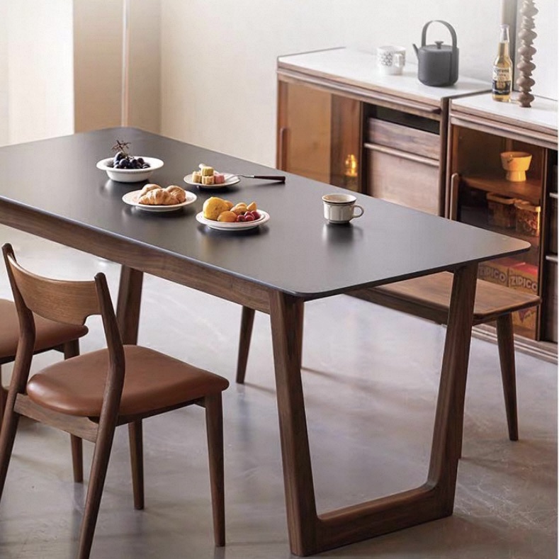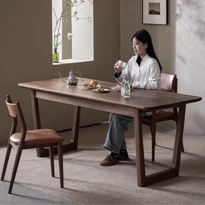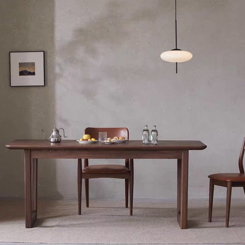 Mặt bàn rộng rãi, phẳng mịn được gia công kỹ lưỡng giúp chống trầy xước nhẹ, dễ lau chùi và phù hợp cho nhu cầu sử dụng hằng ngày như ăn uống, tiếp khách hoặc làm việc. Điểm nhấn đặc biệt nằm ở phần chân bàn dạng khung chữ U cách điệu, kết cấu đơn giản mạnh mẽ, không chỉ đảm bảo độ vững chắc mà còn mang đến vẻ đẹp cá tính, hiện đại cho không gian nội thất.