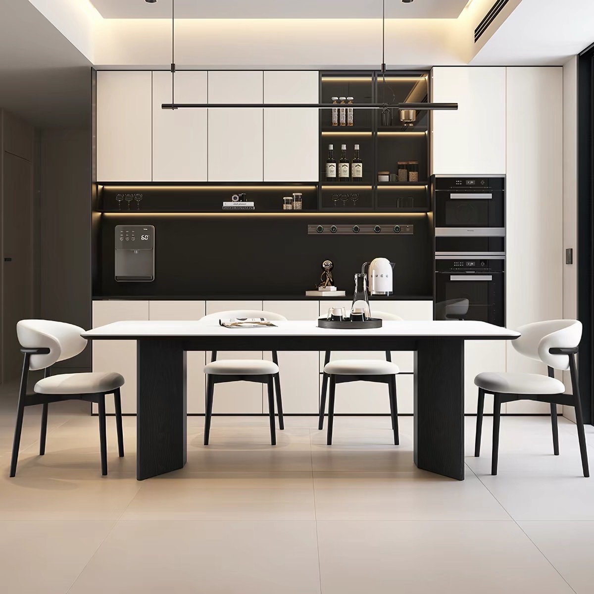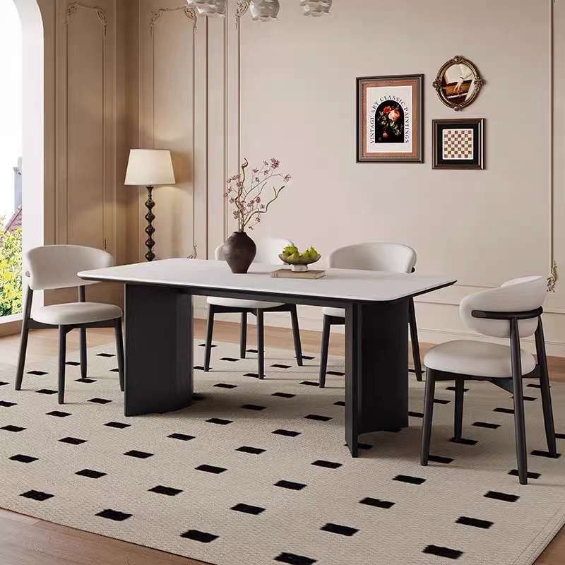 Thiết kế chân bàn dạng khối bản lớn tạo nên sự vững chãi tuyệt đối, đồng thời mang lại nét đẹp mạnh mẽ, hiện đại. Kiểu dáng tối giản nhưng tinh tế giúp bàn dễ phối với nhiều loại ghế ăn khác nhau, từ ghế gỗ, ghế nệm đến ghế da cao cấp. Đây là lựa chọn phù hợp cho những ai yêu thích phong cách Modern Contemporary, nơi đề cao sự đơn giản nhưng vẫn toát lên vẻ đẳng cấp.