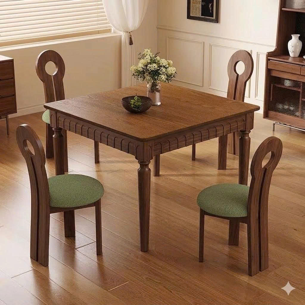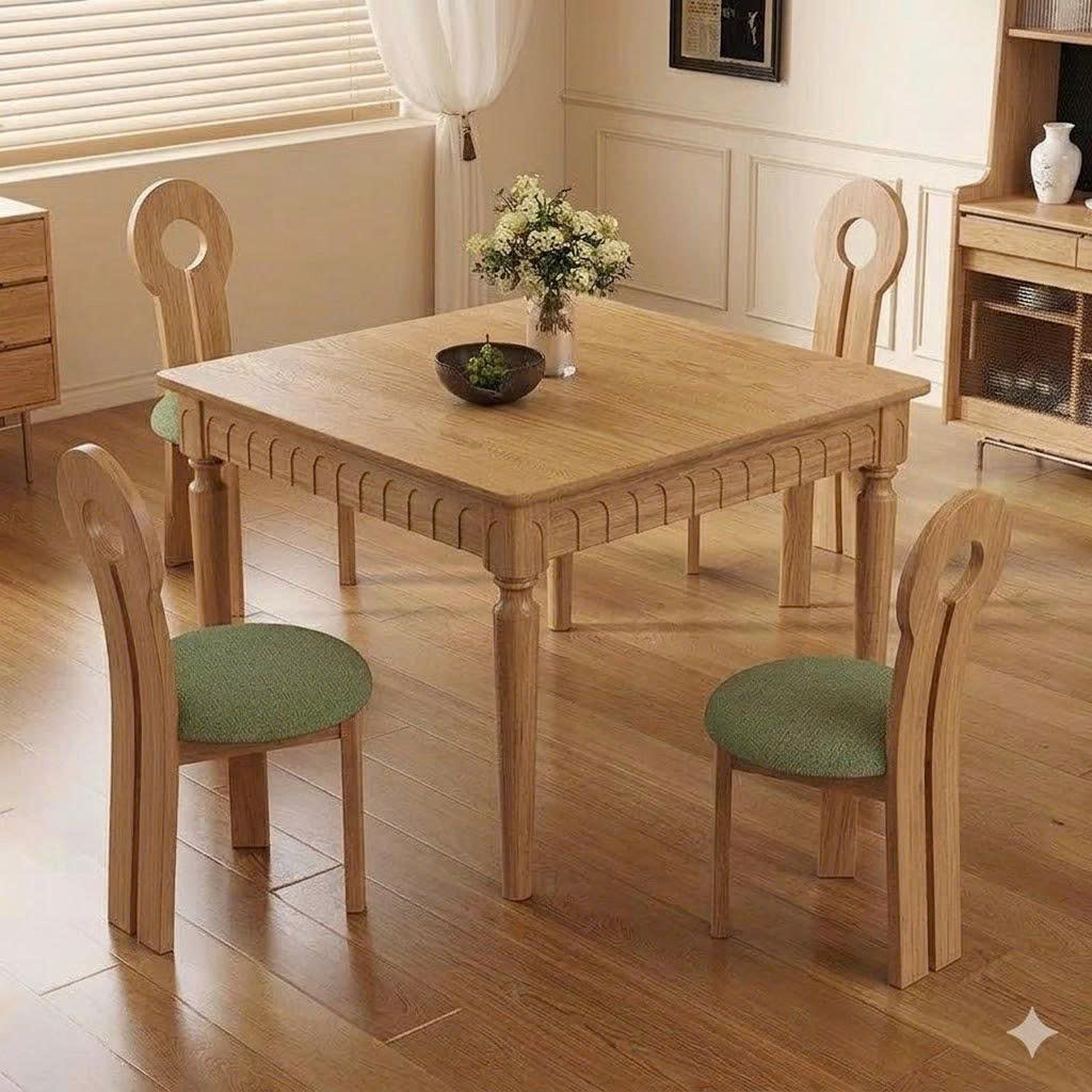 Bàn Ăn Gỗ Tự Nhiên VBA08 Phong Cách INDOCHINE Hiện Đại – Bàn Ăn Mặt Gỗ Cao Cấp 4-6 Ghế, Thiết Kế Tối Giản Chân Tiện, Hoa Văn Độc Đáo