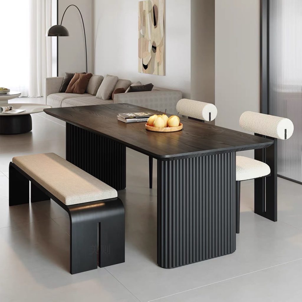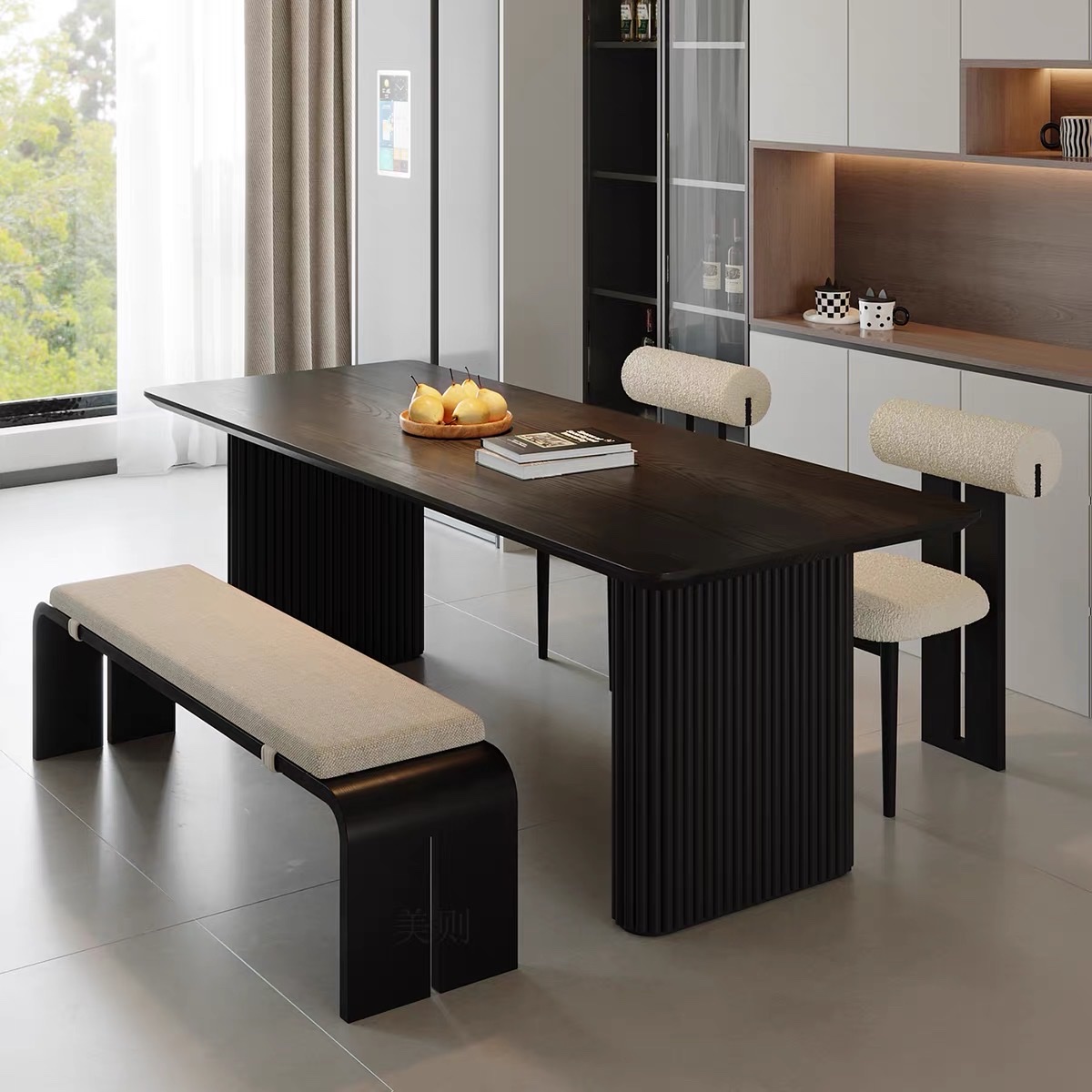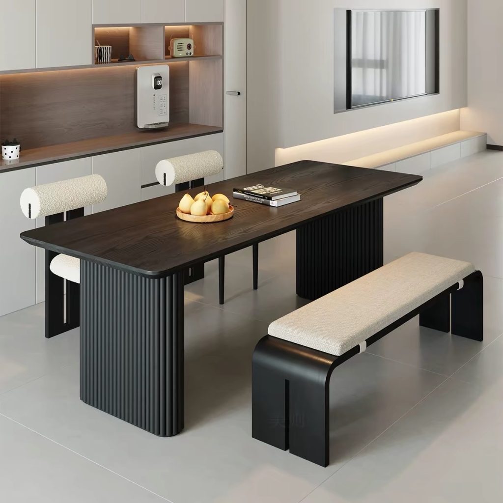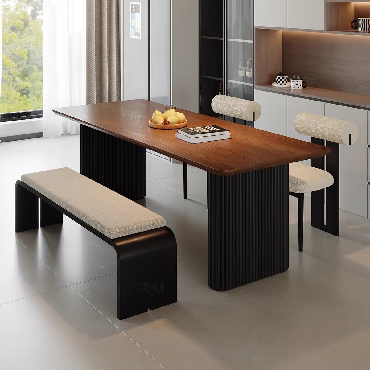 Thiết kế 2 chân trụ lớn giúp bàn đứng vững, chịu lực tốt, đồng thời tạo điểm nhấn khác biệt so với các mẫu bàn truyền thống. Các chi tiết nan gỗ được gia công tỉ mỉ, mang hơi hướng phong cách Modern Art Decor, phù hợp với những không gian yêu cầu tính thẩm mỹ cao như phòng khách, phòng ăn, studio hoặc showroom. Tông màu nâu gỗ trầm ấm giúp dễ dàng phối hợp với nhiều phong cách nội thất như hiện đại, tối giản, Japandi hay luxury.