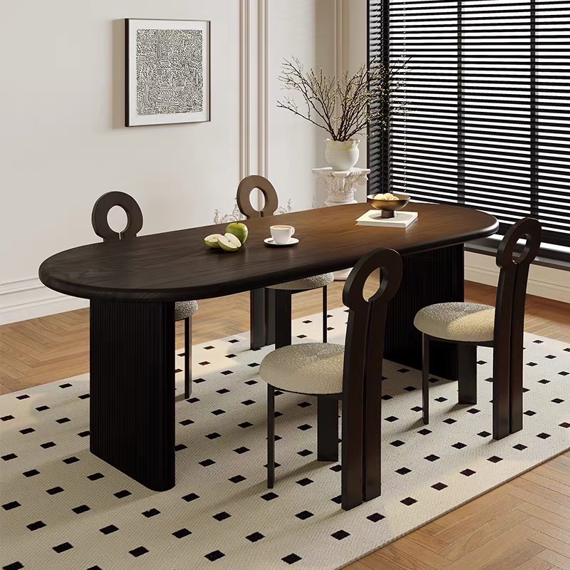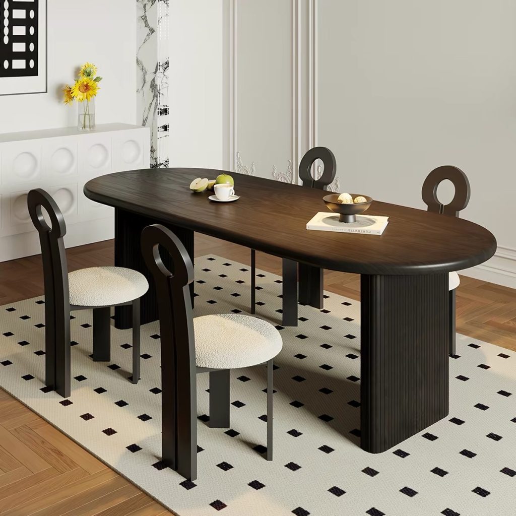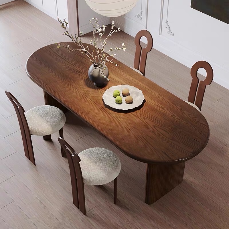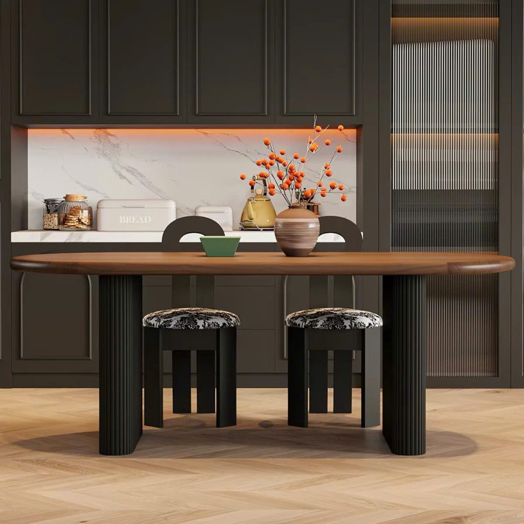 Thiết kế 2 chân trụ lớn giúp bàn đứng vững, chịu lực tốt, đồng thời tạo điểm nhấn khác biệt so với các mẫu bàn truyền thống. Các chi tiết nan gỗ được gia công tỉ mỉ, mang hơi hướng phong cách Modern Art Decor, phù hợp với những không gian yêu cầu tính thẩm mỹ cao như phòng khách, phòng ăn, studio hoặc showroom. Tông màu nâu gỗ trầm ấm giúp dễ dàng phối hợp với nhiều phong cách nội thất như hiện đại, tối giản, Japandi hay luxury.