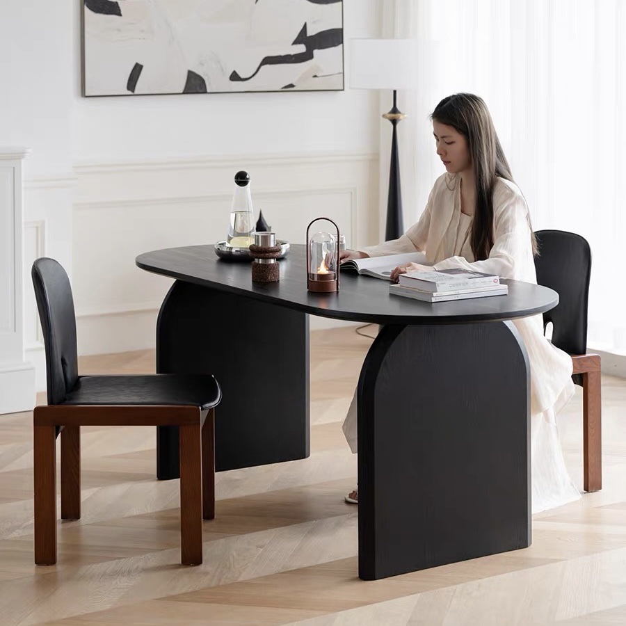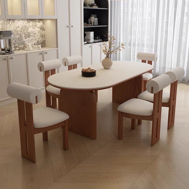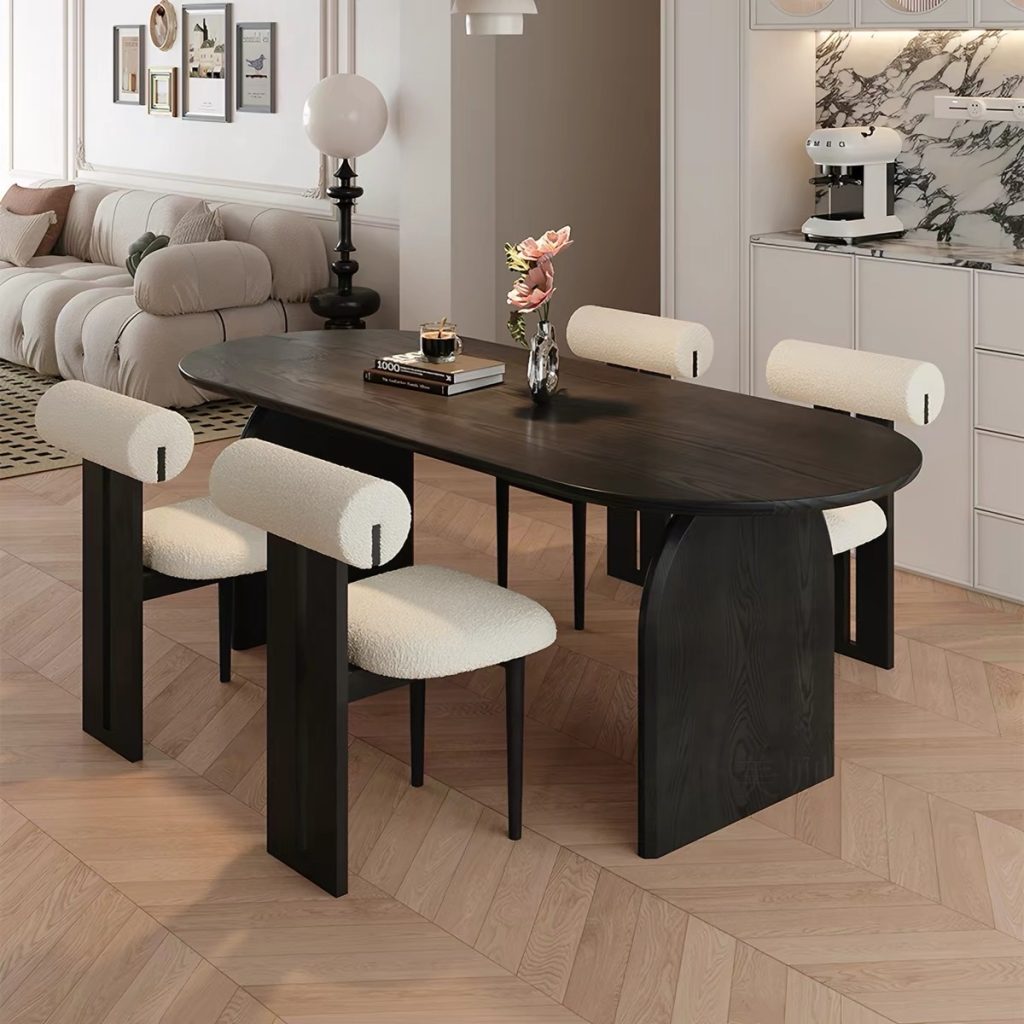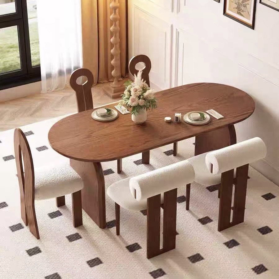 Bàn Ăn Dài Gỗ Tự Nhiên VBA37 Phong Cách JAPANDI Hiện Đại – Bàn Ăn Mặt Oval Gỗ Cao Cấp 4-8 Ghế, Thiết Kế Tối Giản Chân Thanh Độc Đáo
