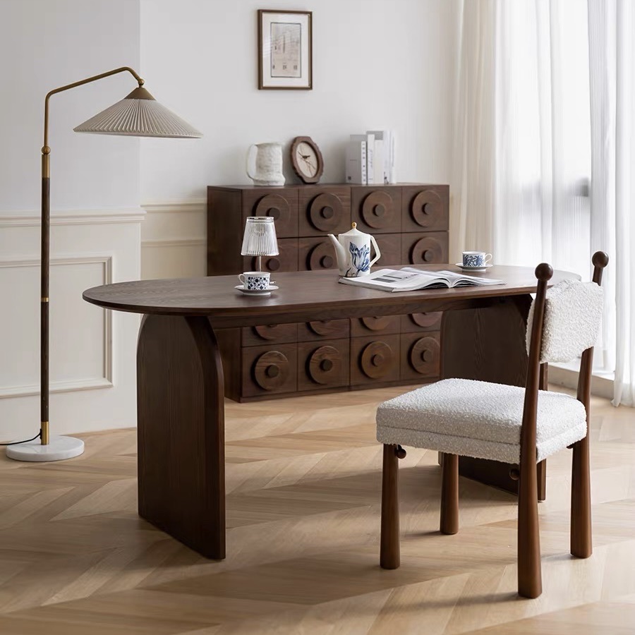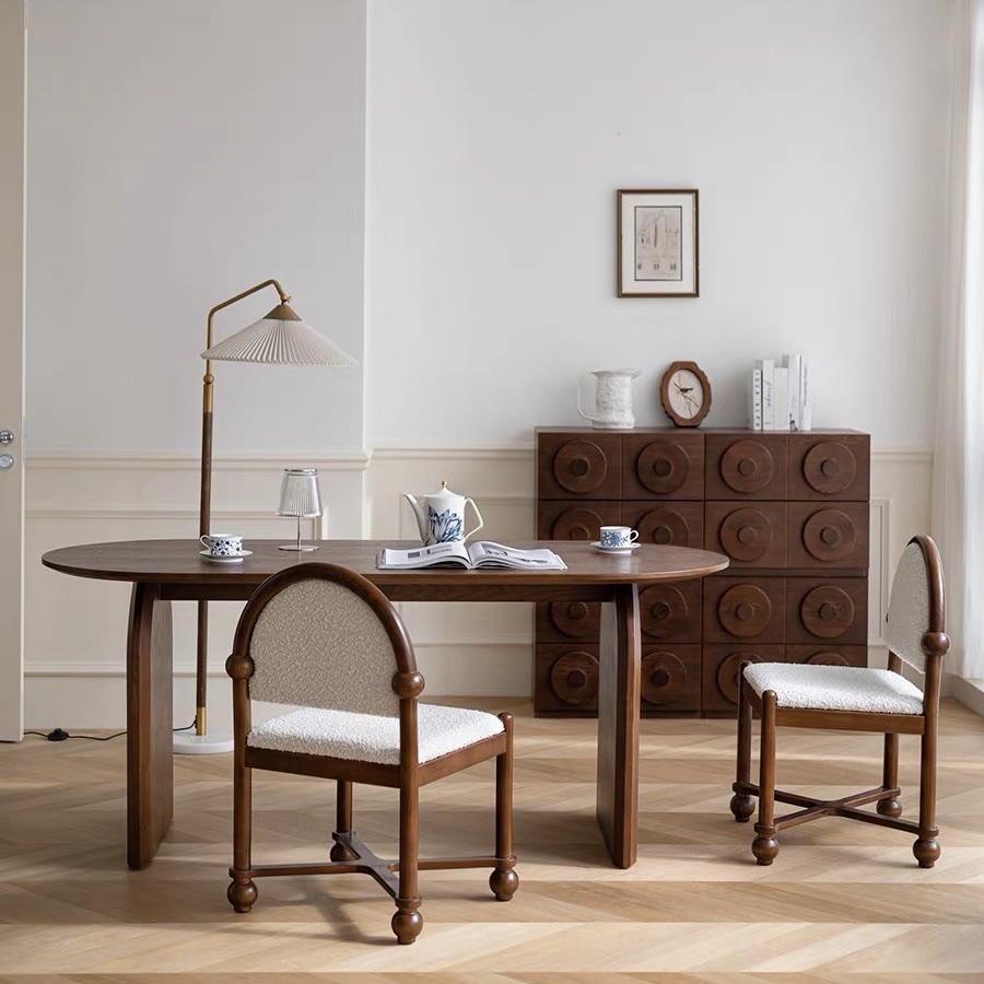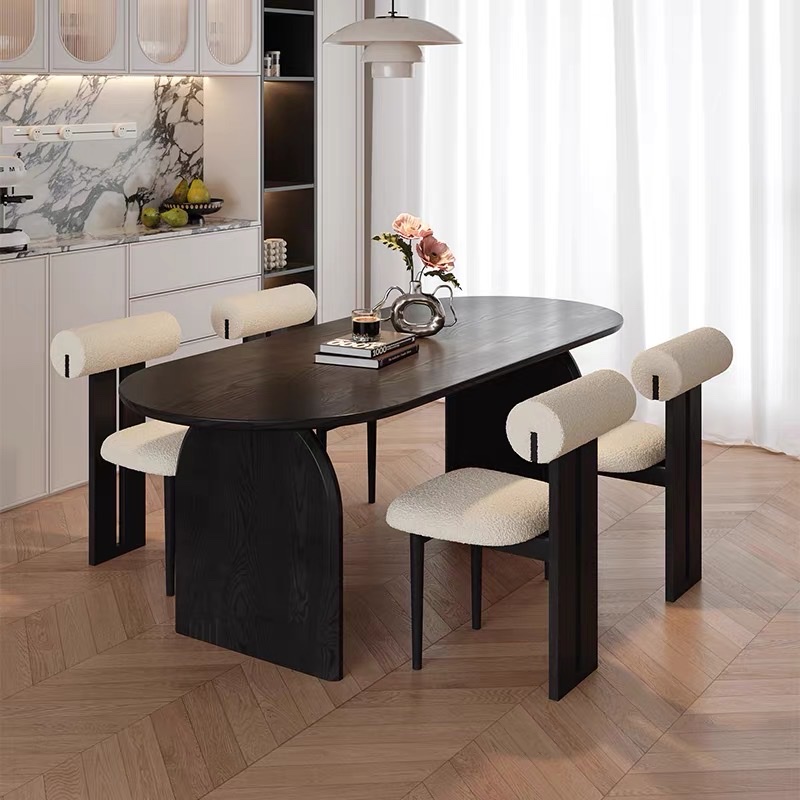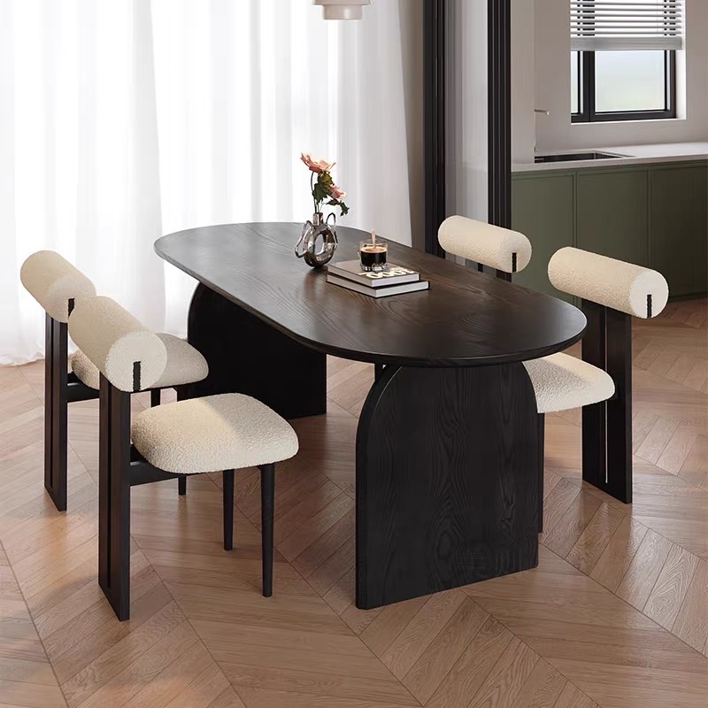 Bàn Ăn Dài Gỗ Tự Nhiên VBA37 Phong Cách JAPANDI Hiện Đại – Bàn Ăn Mặt Oval Gỗ Cao Cấp 4-8 Ghế, Thiết Kế Tối Giản Chân Thanh Độc Đáo
