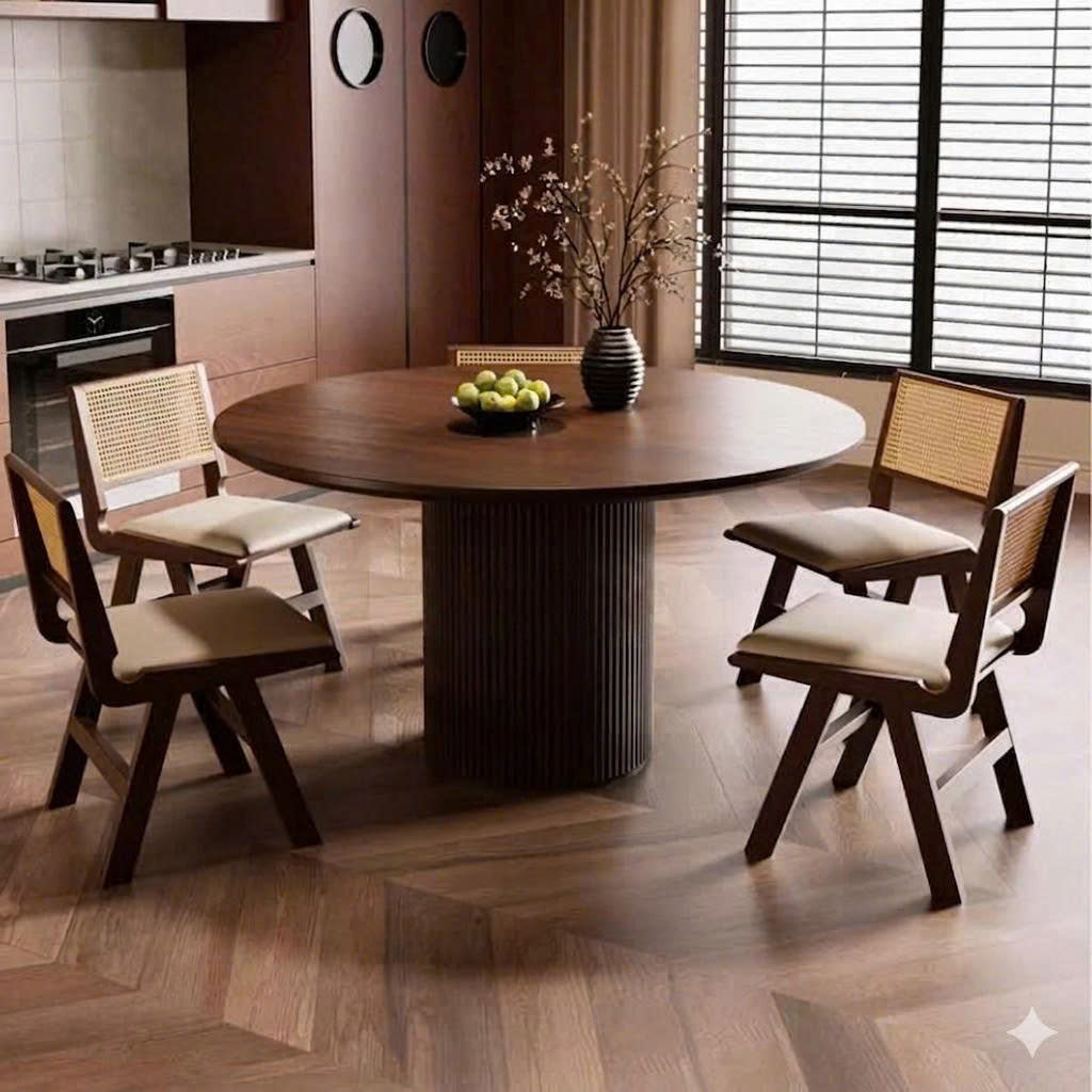 Bàn Ăn Gỗ Tự Nhiên VBA34 Phong Cách Bắc Âu Hiện Đại – Bàn Ăn Mặt Gỗ Cao Cấp 4-6 Ghế, Thiết Kế Tối Giản ChânTrụ nan gõ Rustic Độc Đáo Đặc Trưng