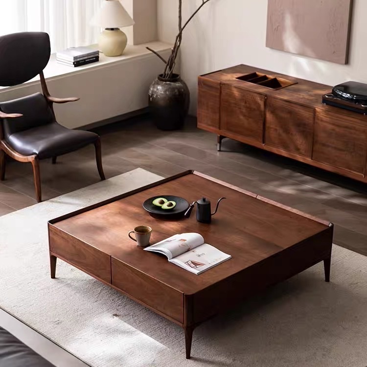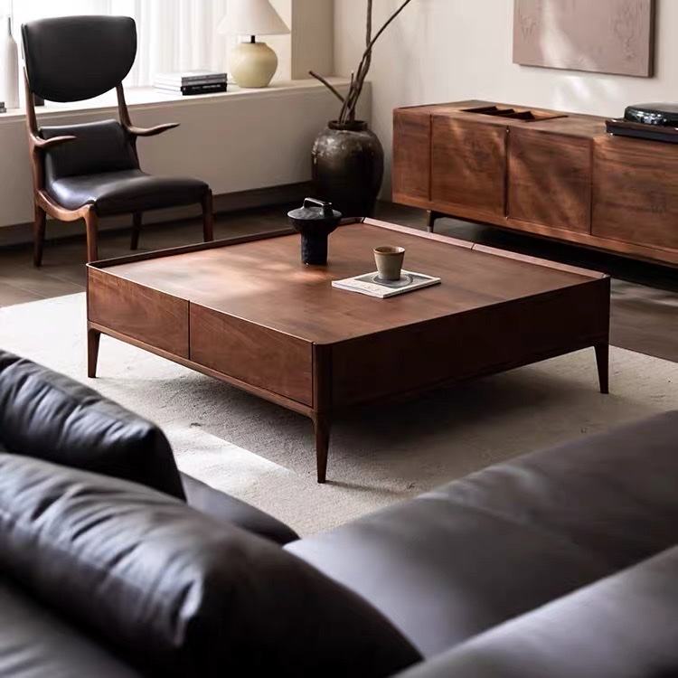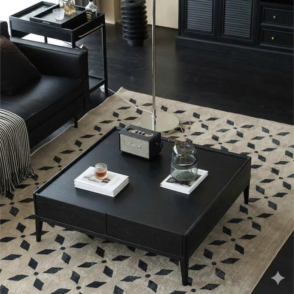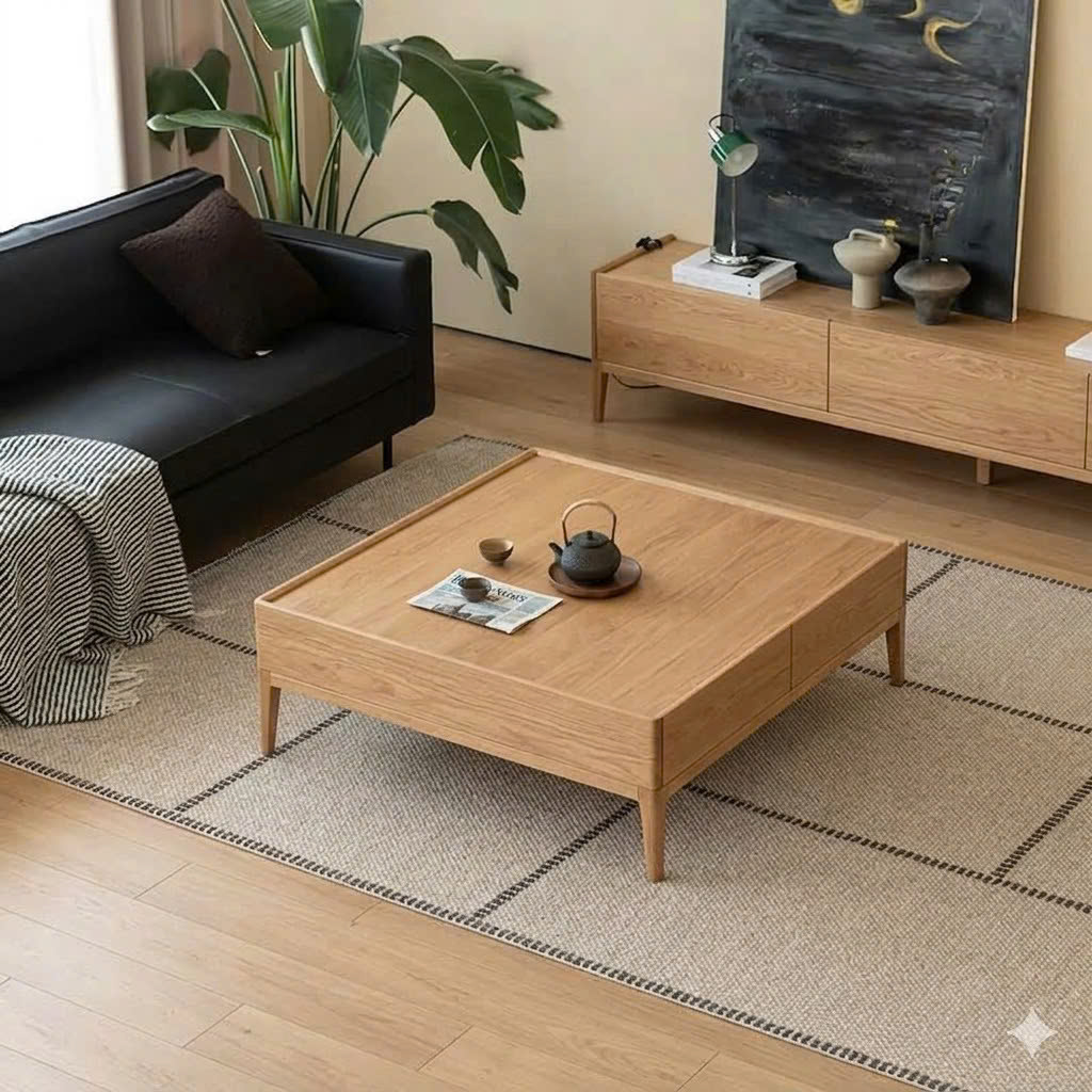 Bàn Trà Sofa Gỗ Tự Nhiên VBT35 Dáng Vuông – Bàn Sofa Cao Cấp Nhiều Ngăn Kéo, Thiết Kế Hiện Đại Tiện Lợi Cho Phòng Khách