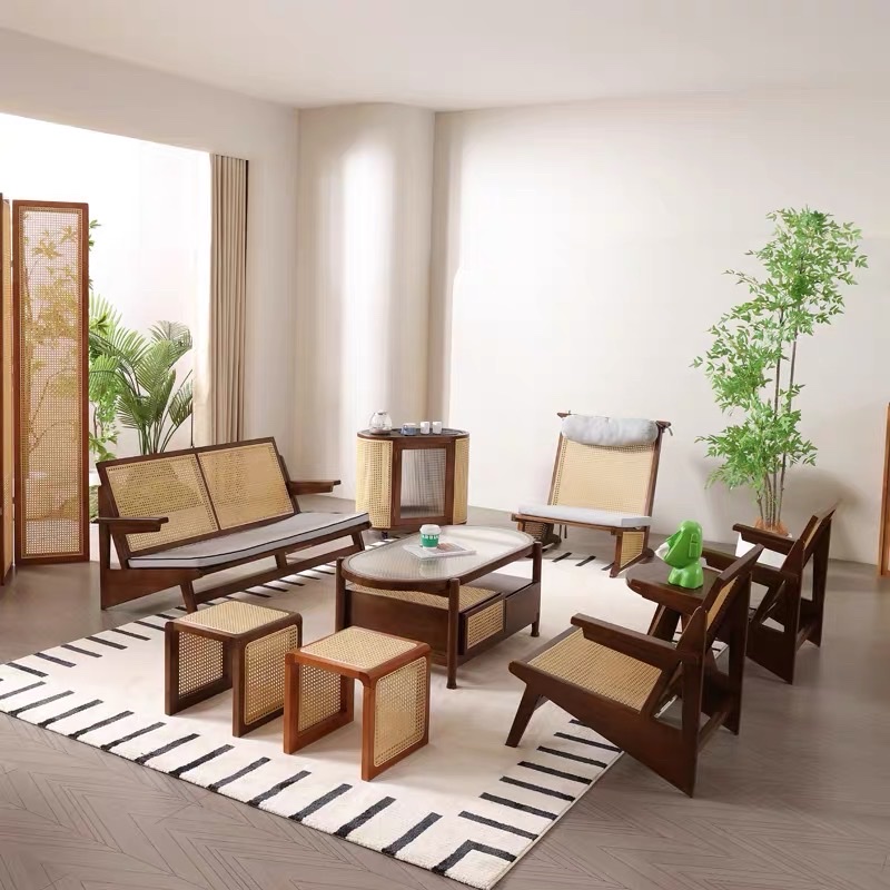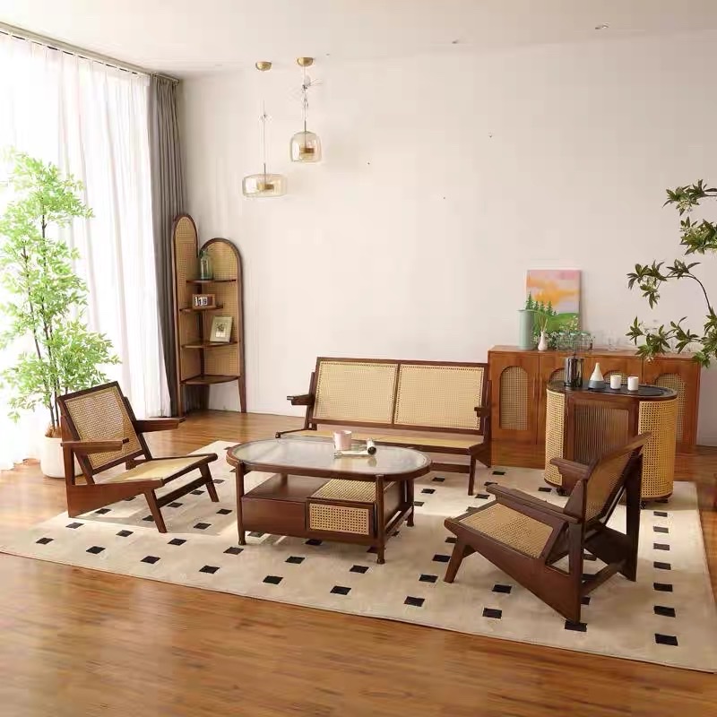 >Phần kệ dưới kết hợp mây đan thoáng khí, mang lại điểm nhấn tự nhiên và tiện lợi để sách, tạp chí hoặc đồ decor. Ngăn kéo bên hông giúp tối ưu không gian lưu trữ, giữ phòng khách luôn gọn gàng.