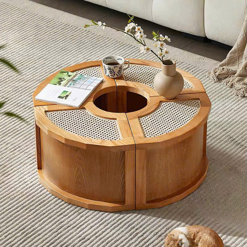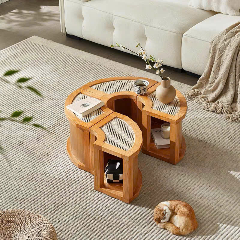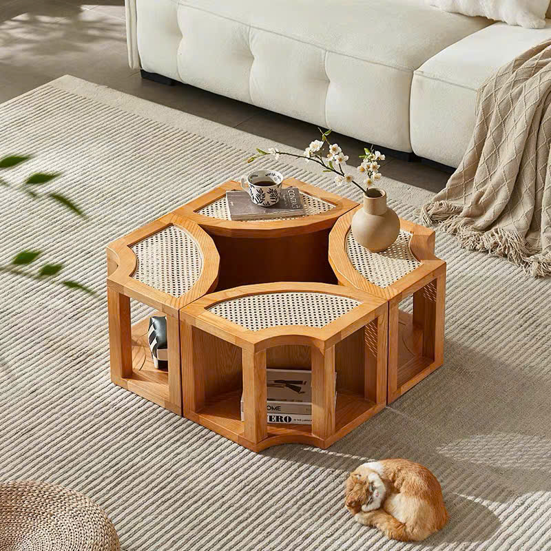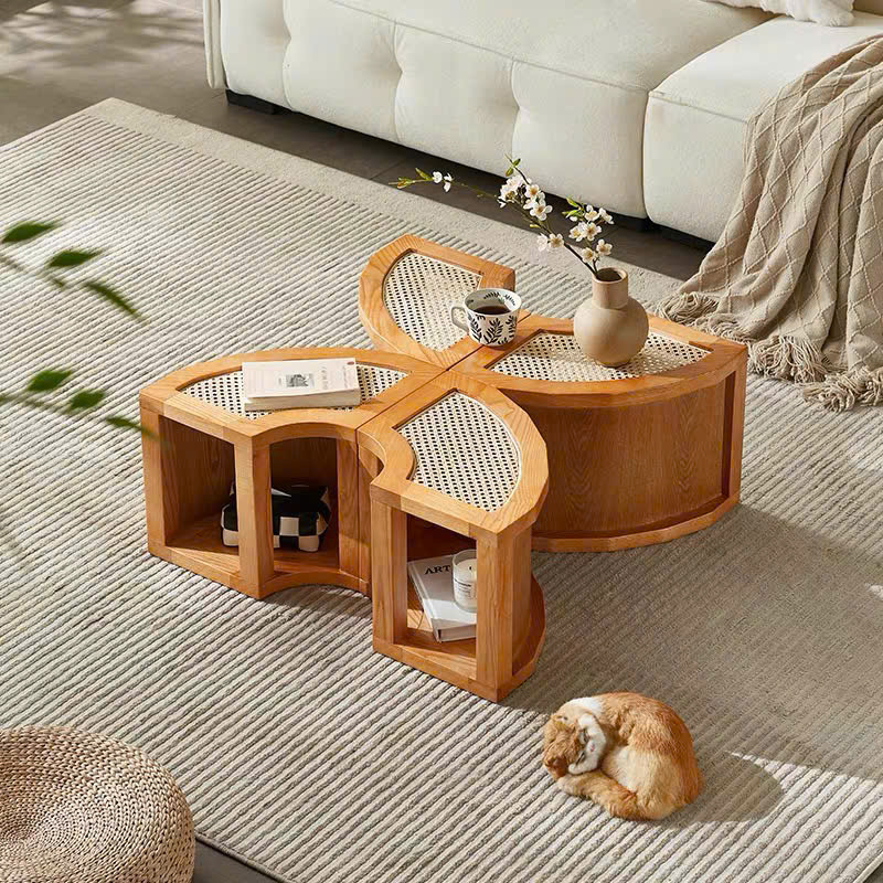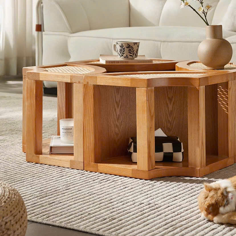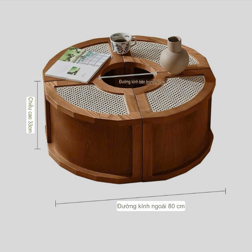 Bàn Trà Sofa Gỗ VBT23 Phong Cách Scandinavian Indochine – Bàn Sofa Mặt Gỗ Phối Mây Cao Cấp, Thiết Kế Khối Tiện Lợi – Sáng Tạo, Hiện Đại Tối Giản !