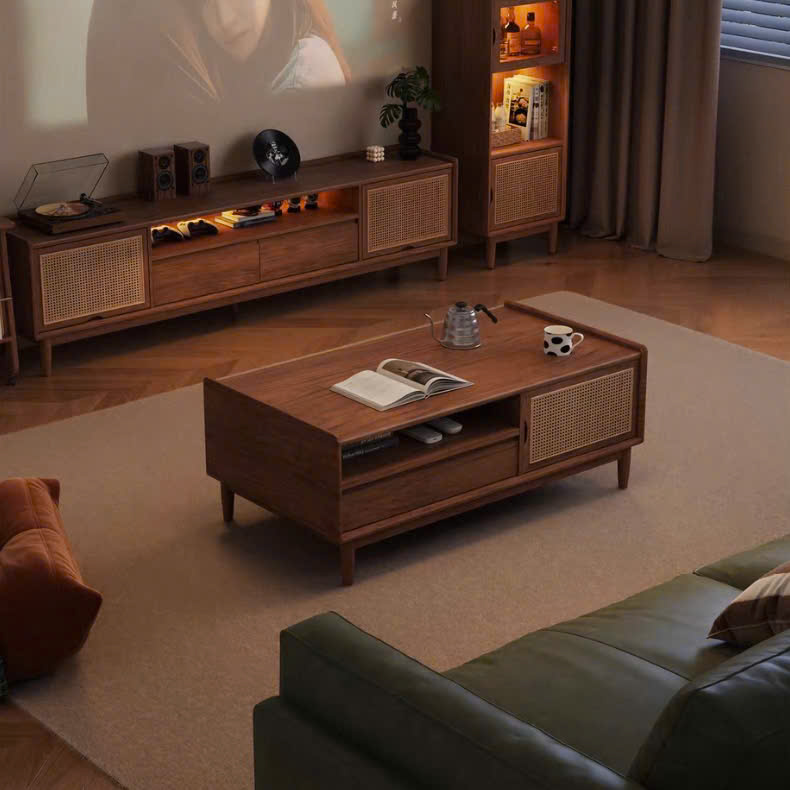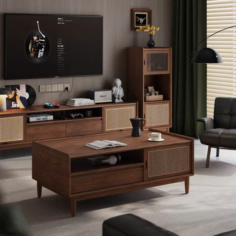 Thiết kế: Ngăn kéo chạm khắc họa tiết hình học + khoang chứa mở tiện lợi
