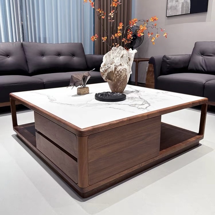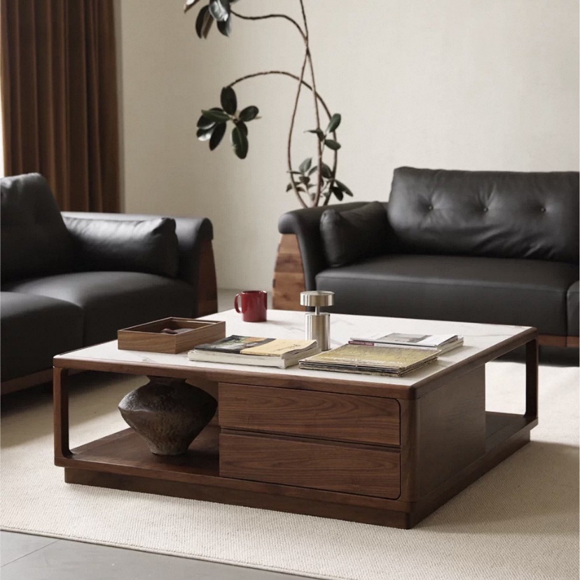 Bàn Trà Sofa Gỗ Tự Nhiên VBT40 Dáng Vuông – Bàn Sofa Cao Cấp Mặt Đá Có Ngăn Kéo, Thiết Kế Hiện Đại Tiện Lợi Cho Phòng Khách