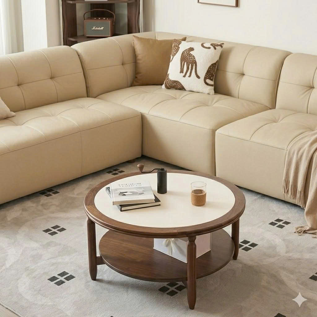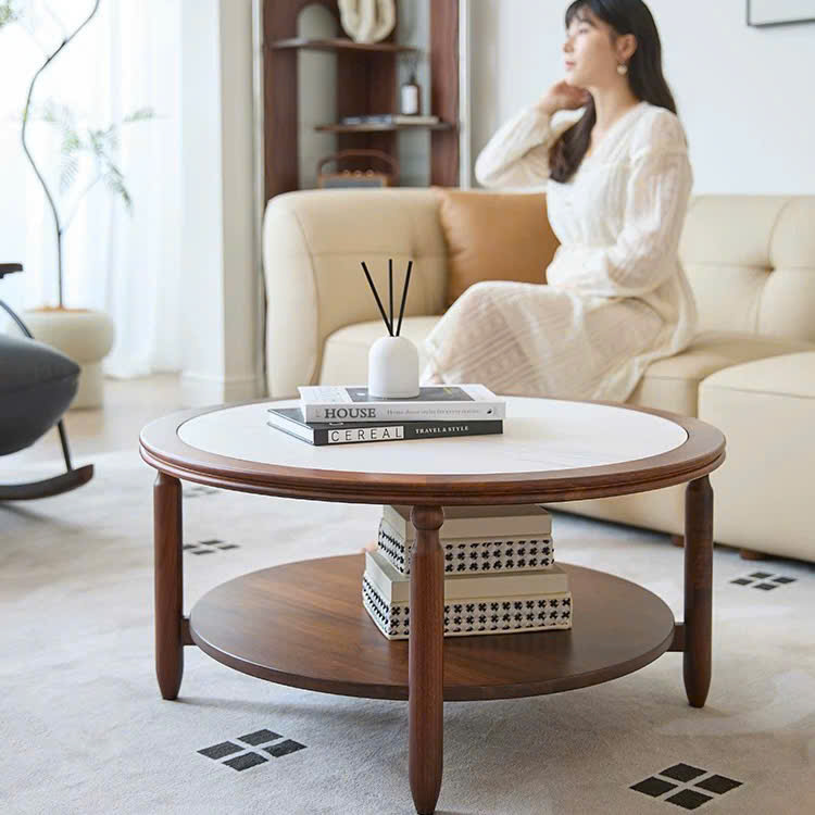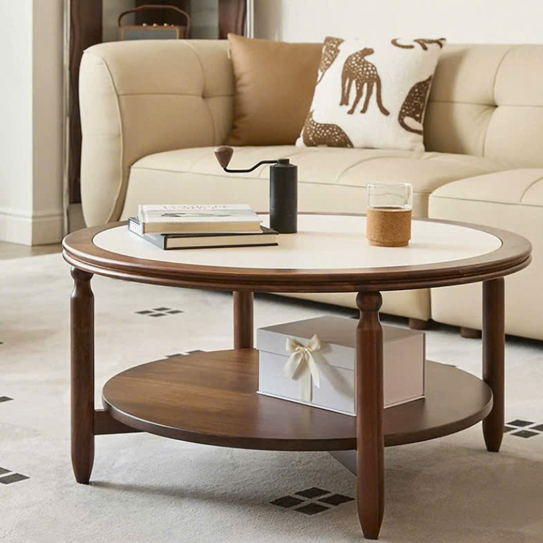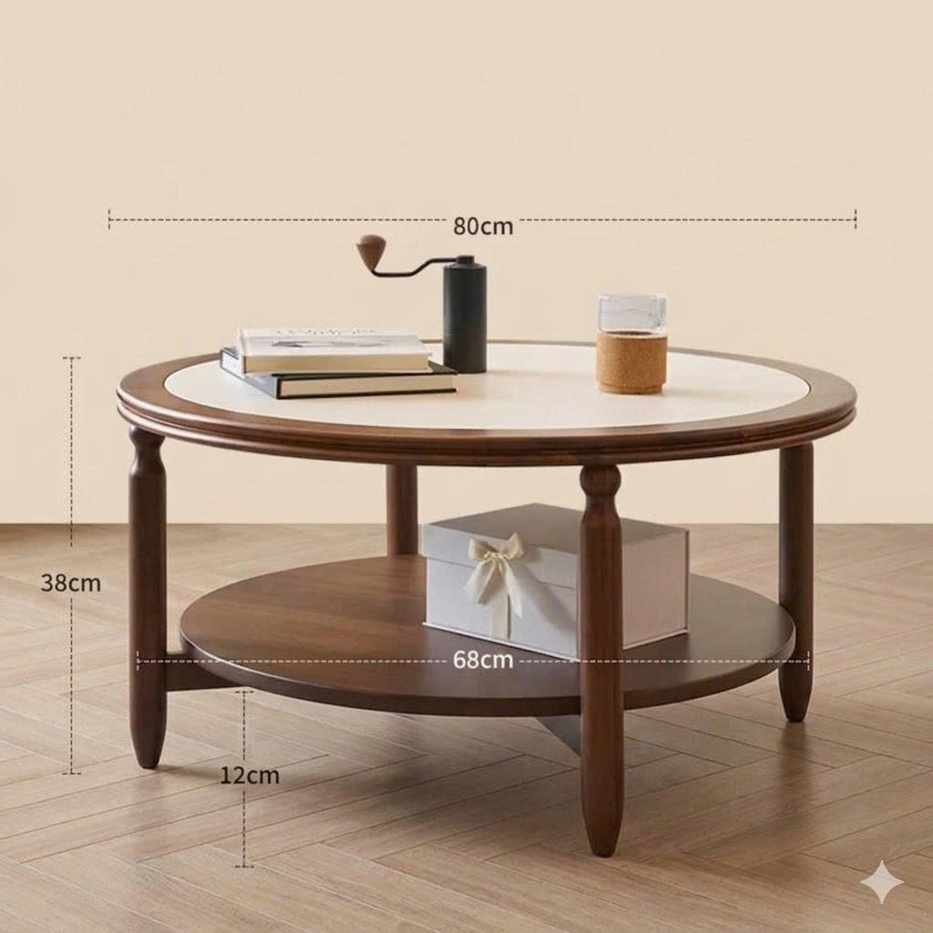Bàn Trà Sofa Gỗ VBT58 Phong Cách Vintage – Bàn Sofa Tròn 2 Tầng Mặt Đá Ceramic Cao Cấp, Bàn Tiện Lợi Trang Trí Phòng Khách!