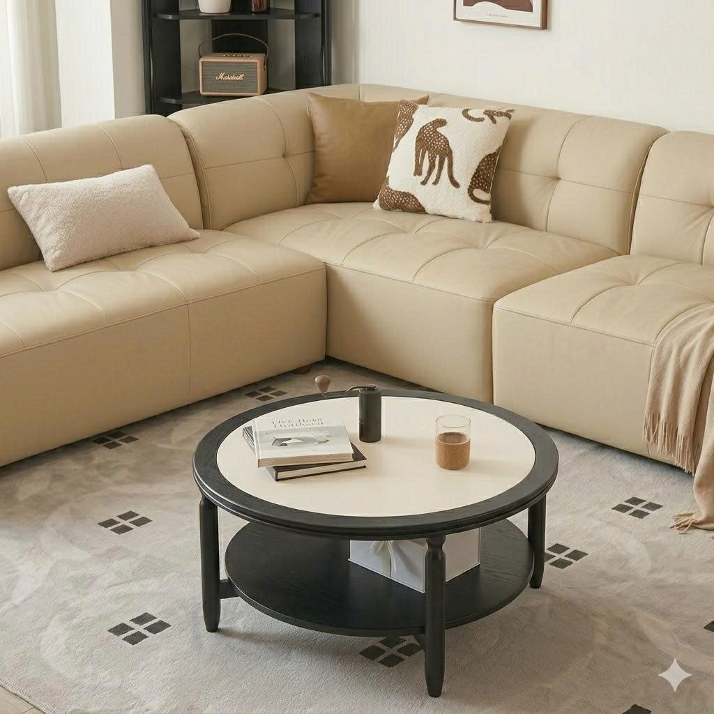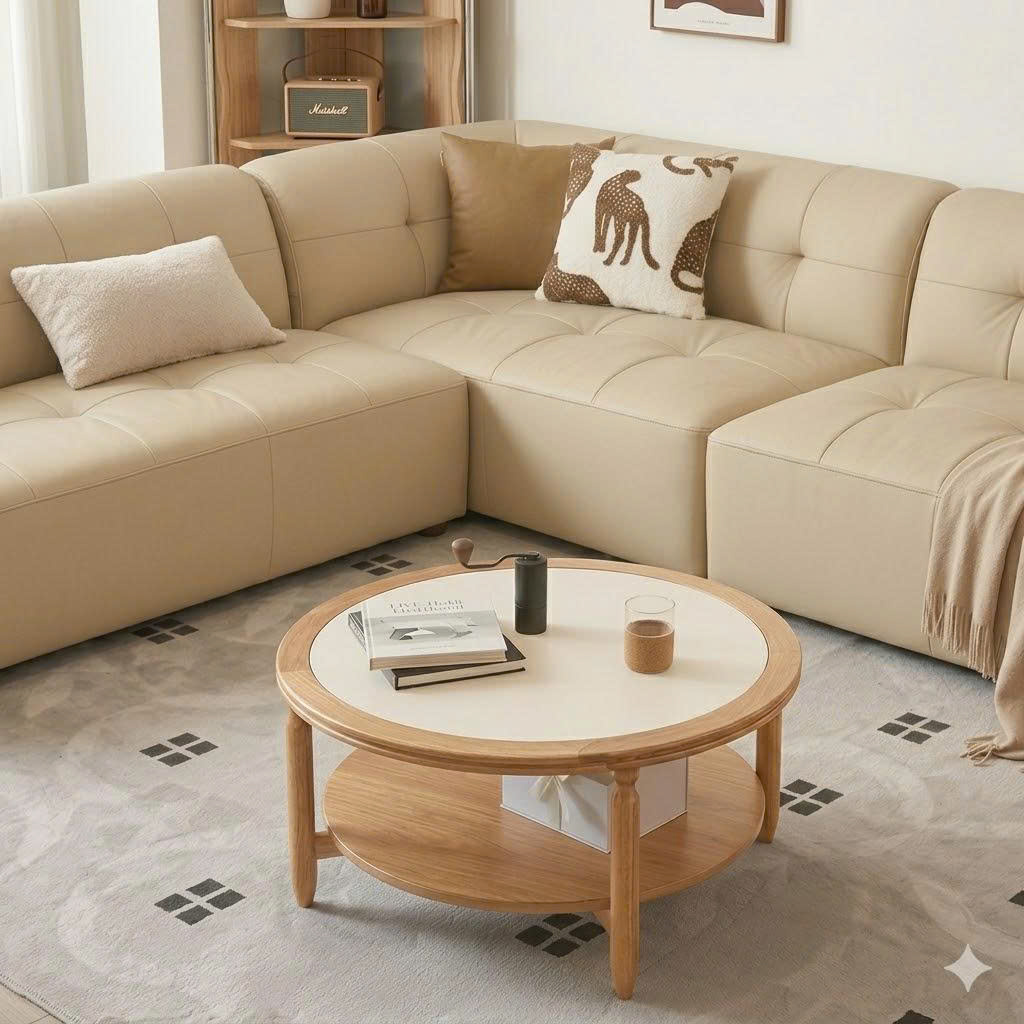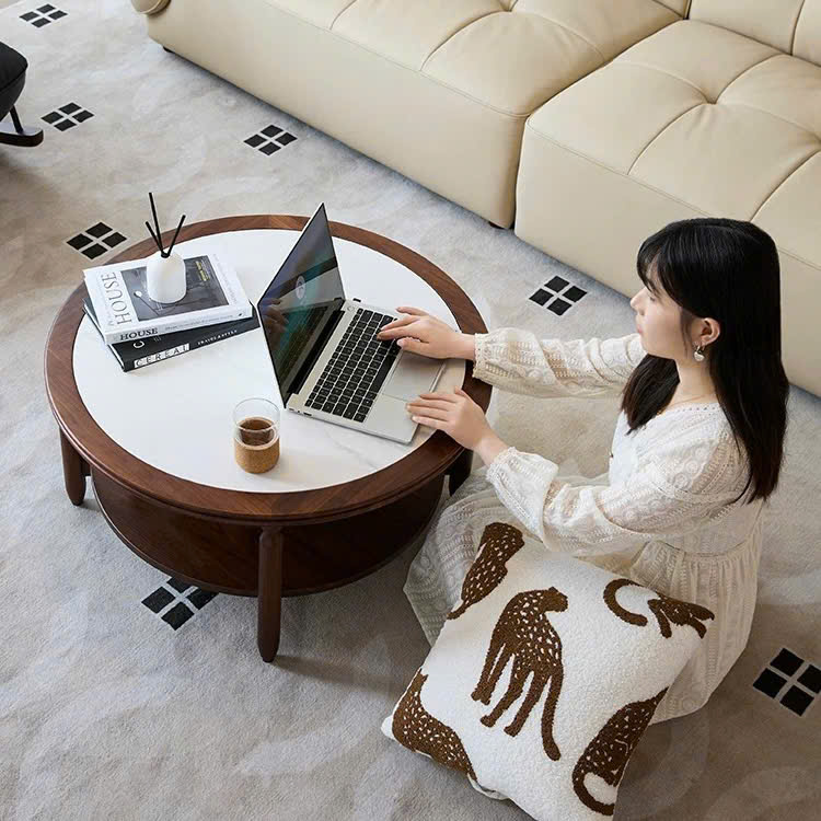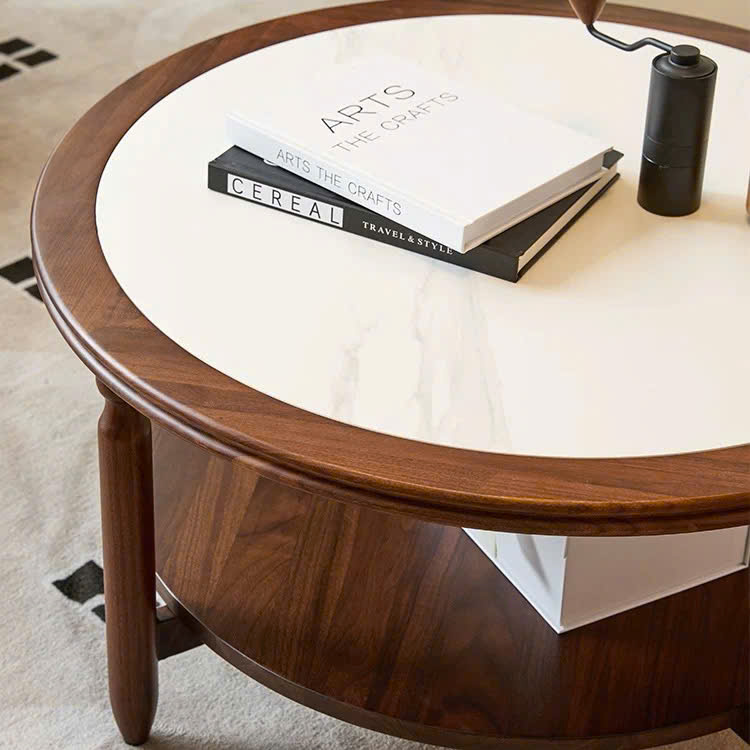 Bàn Trà Sofa Gỗ VBT58 Phong Cách Vintage – Bàn Sofa Tròn 2 Tầng Mặt Đá Ceramic Cao Cấp, Bàn Tiện Lợi Trang Trí Phòng Khách!