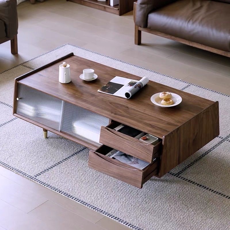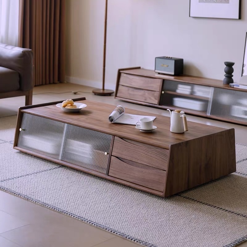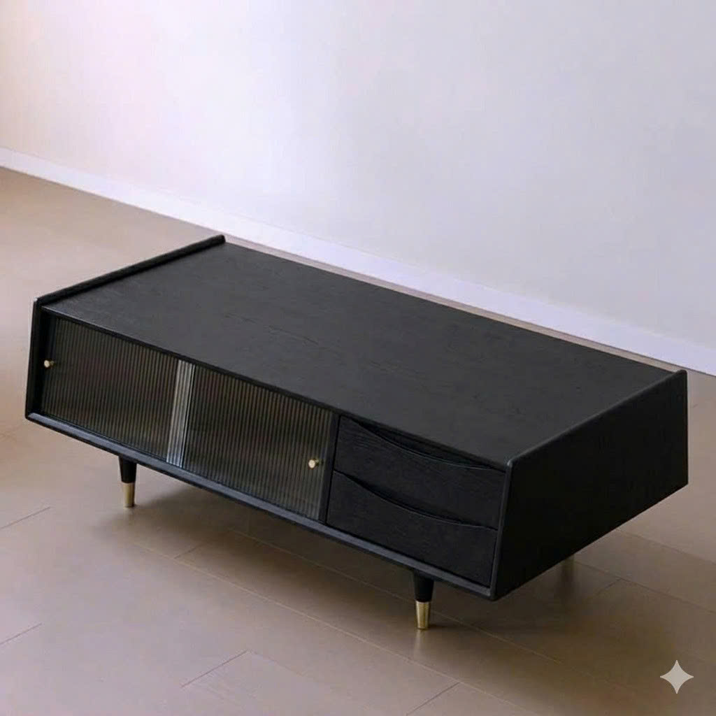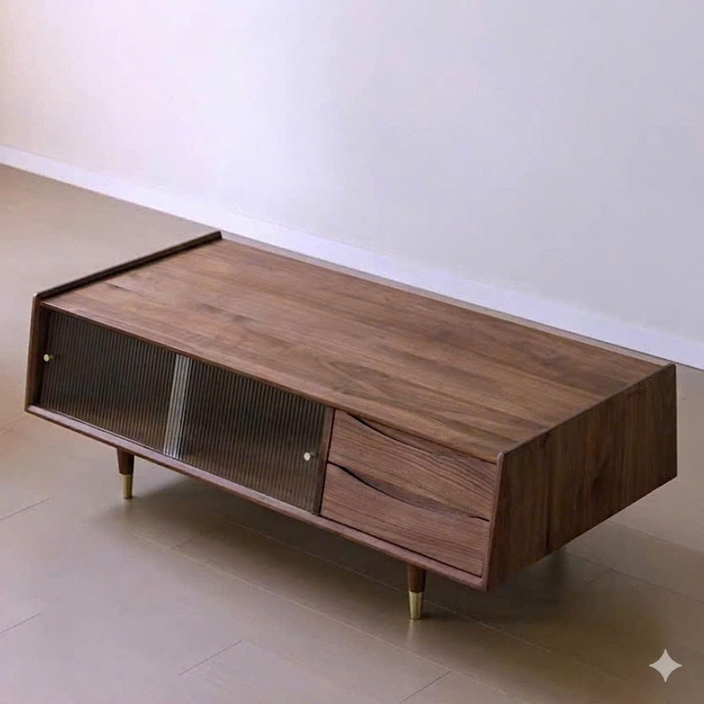 Bàn Trà Sofa Gỗ VBT43 Phong Cách Japandi – Bàn Sofa Gỗ Tự Nhiên Cửa Lùa Kính Mờ, Ngăn Kéo Tiện Lợi, Thiết Kế Tối Giản Cao Cấp