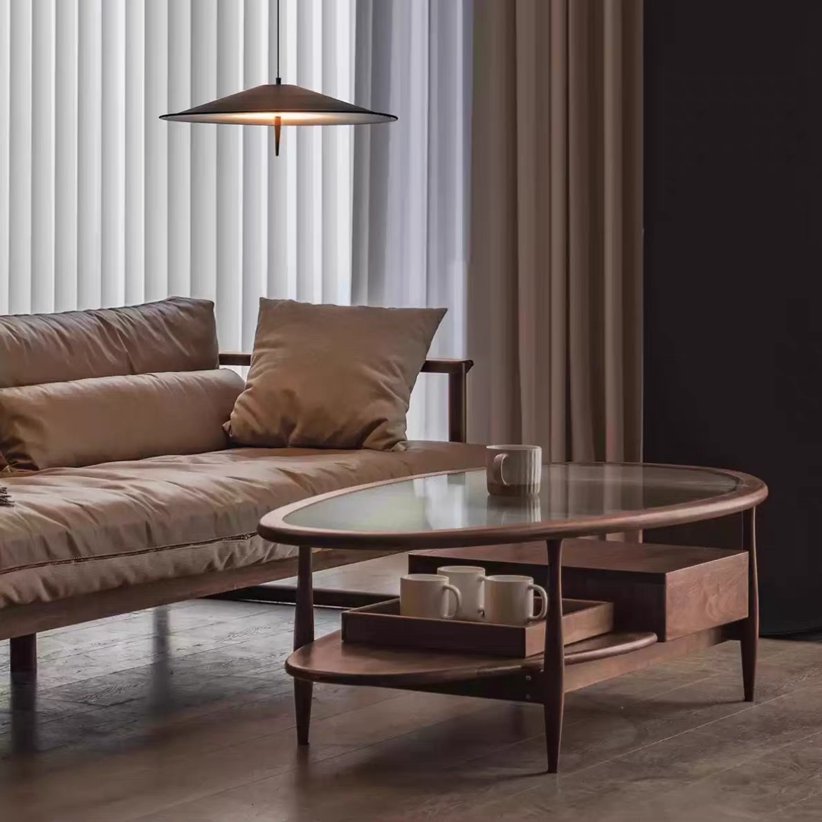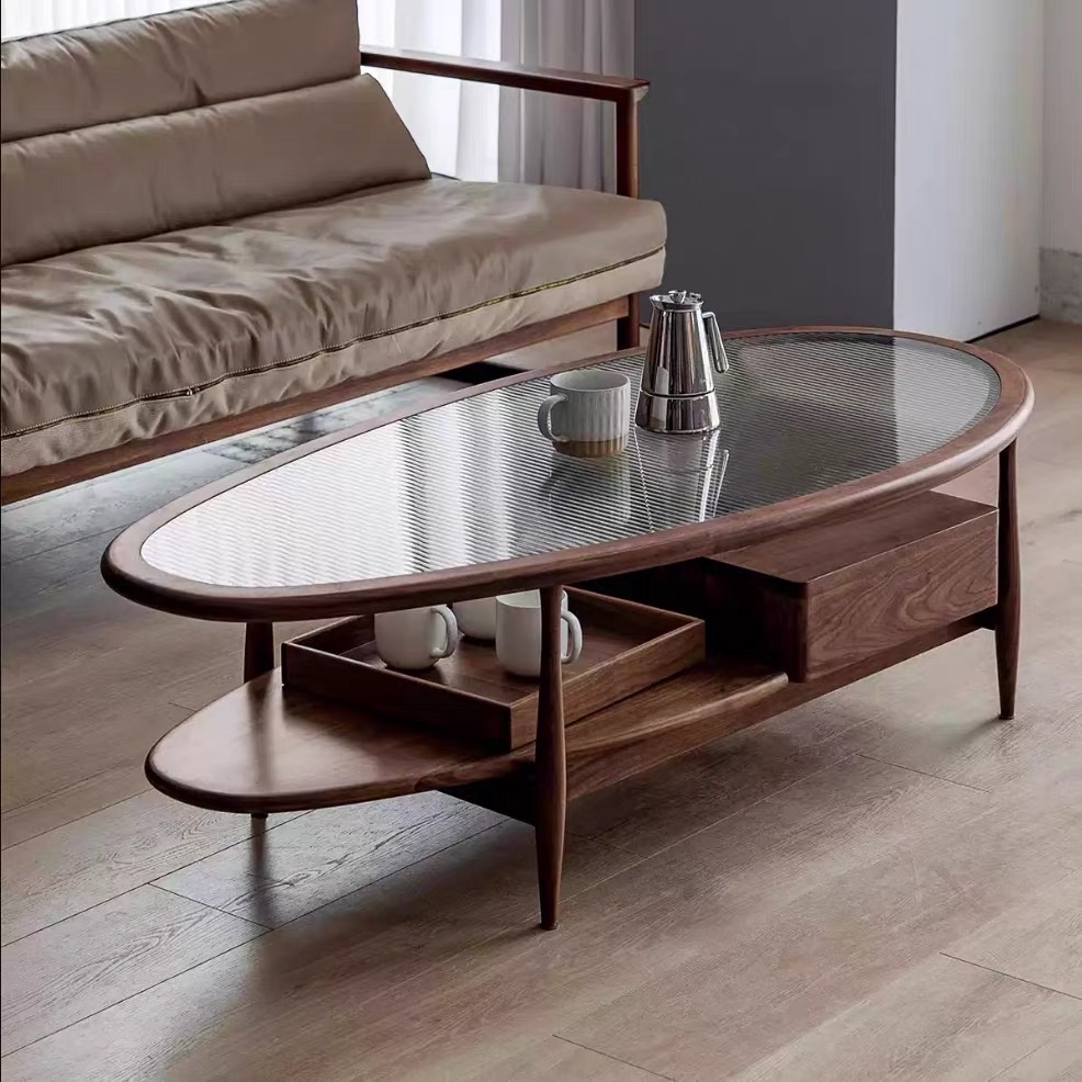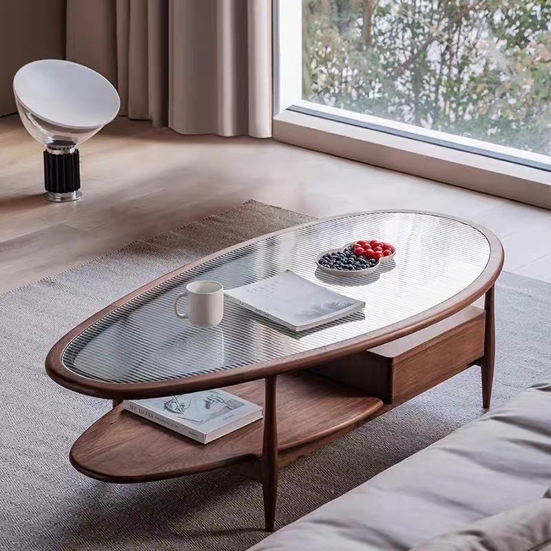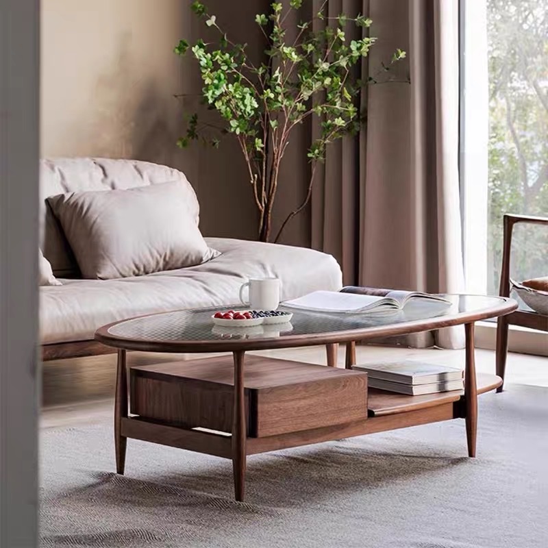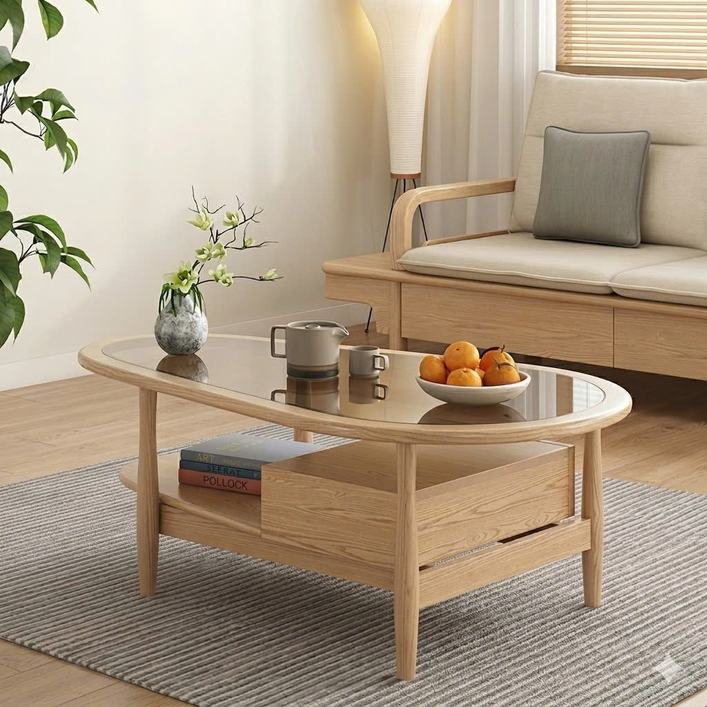 BÀN TRÀ GỖ MẶT KÍNH HÌNH LÁ VBT44 – PHONG CÁCH – MID-CENTURY MODERN TINH TẾ CHO PHÒNG KHÁCH