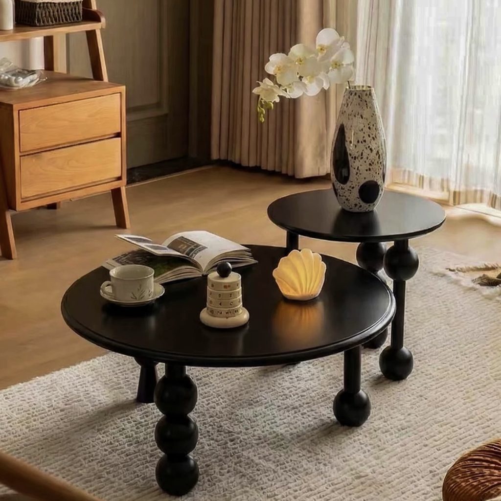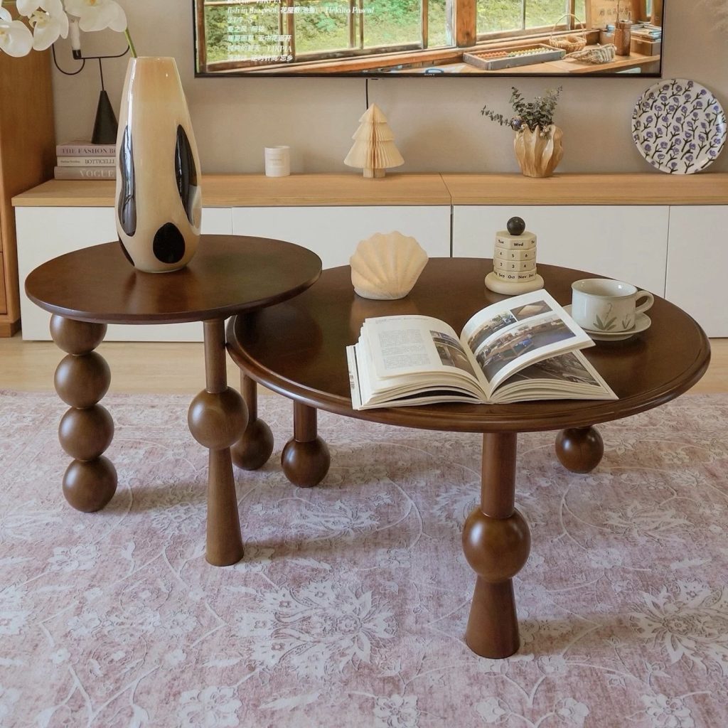 Sản phẩm gồm 2 kích thước bàn lớn – nhỏ tiện lợi, có thể sử dụng riêng lẻ hoặc lồng ghép linh hoạt tùy theo nhu cầu. Mặt bàn rộng rãi, kết hợp tầng dưới giúp tối ưu không gian lưu trữ, dễ dàng đặt sách, đồ decor hoặc vật dụng hàng ngày.