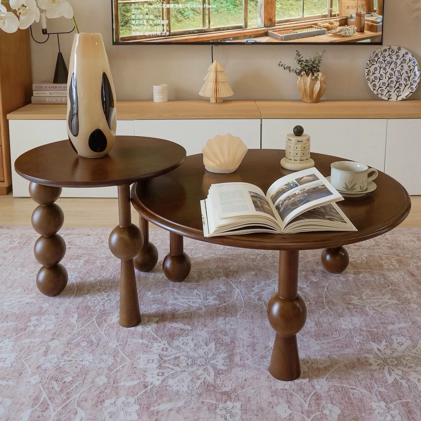 Set Bàn Trà Sofa Gỗ VBT50 Phong Cách Bắc Âu – Bàn Sofa Tròn Chân Tiện tròn Tinh Tế – Độc Đáo , Mặt Gỗ Cao Cấp, Bộ 2 Bàn Tiện Lợi Trang Trí Phòng Khách!