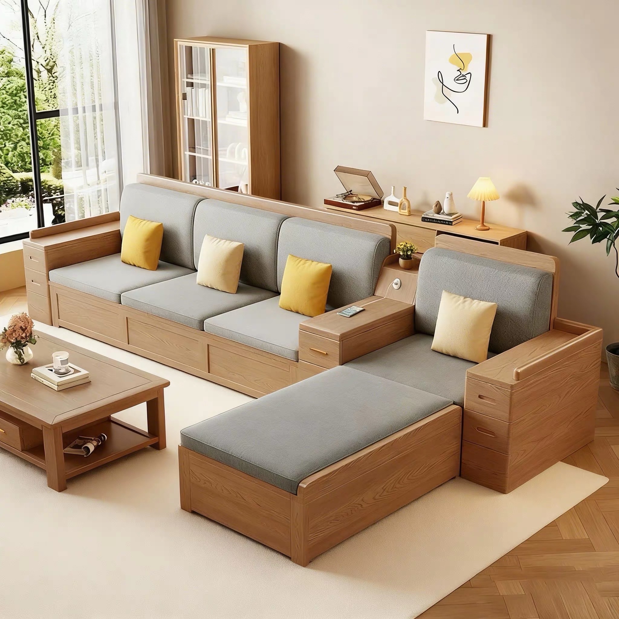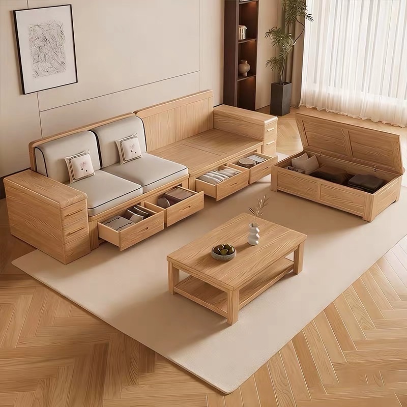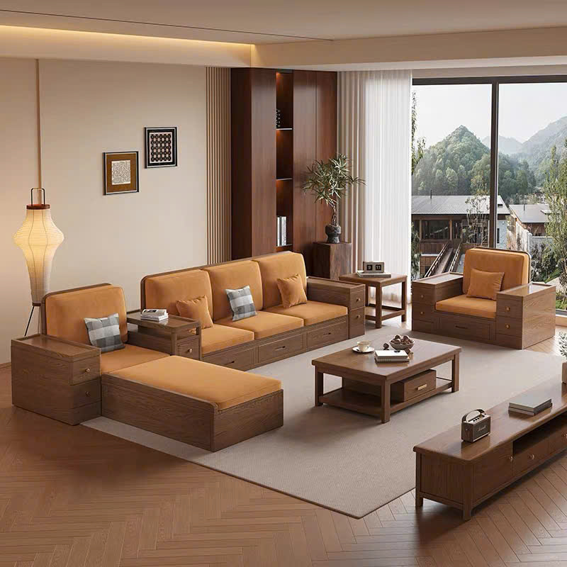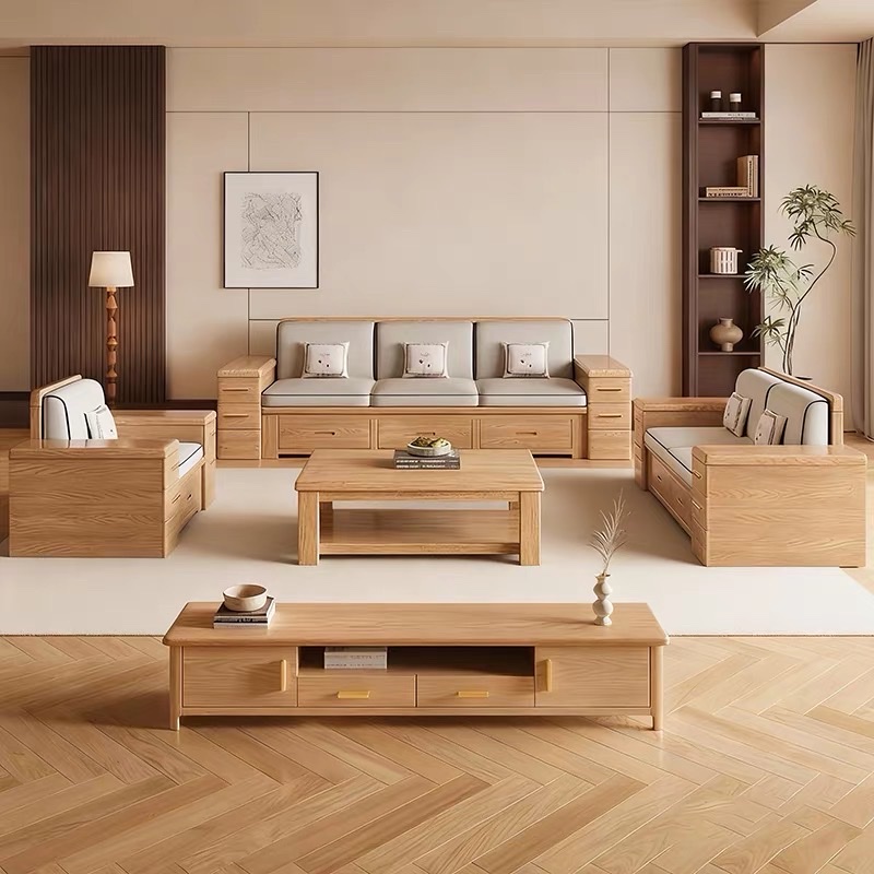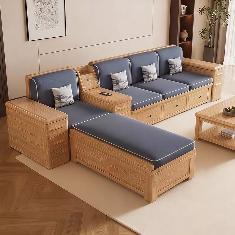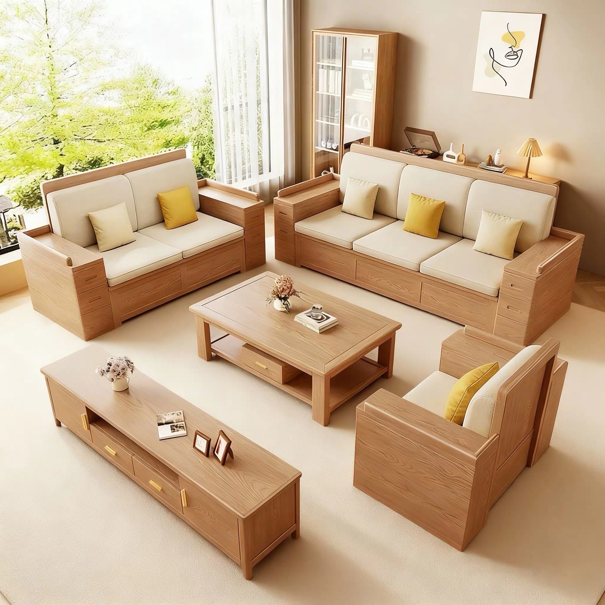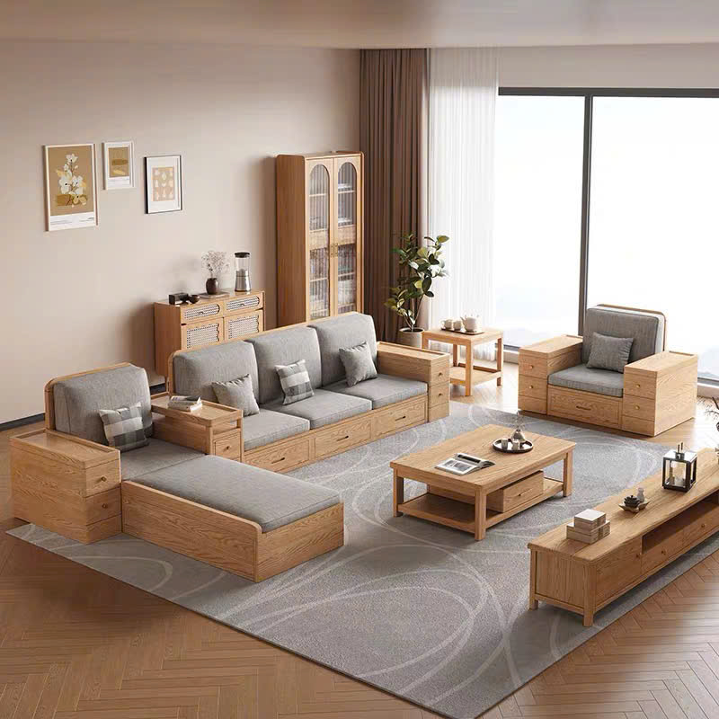 Sofa Gỗ Tự Nhiên VS134 Cao Cấp – Sofa Phòng Khách Khung Gỗ Uốn Cong Sang Trọng, Đệm Da/Nỉ Êm Ái Phong Cách Hiện Đại