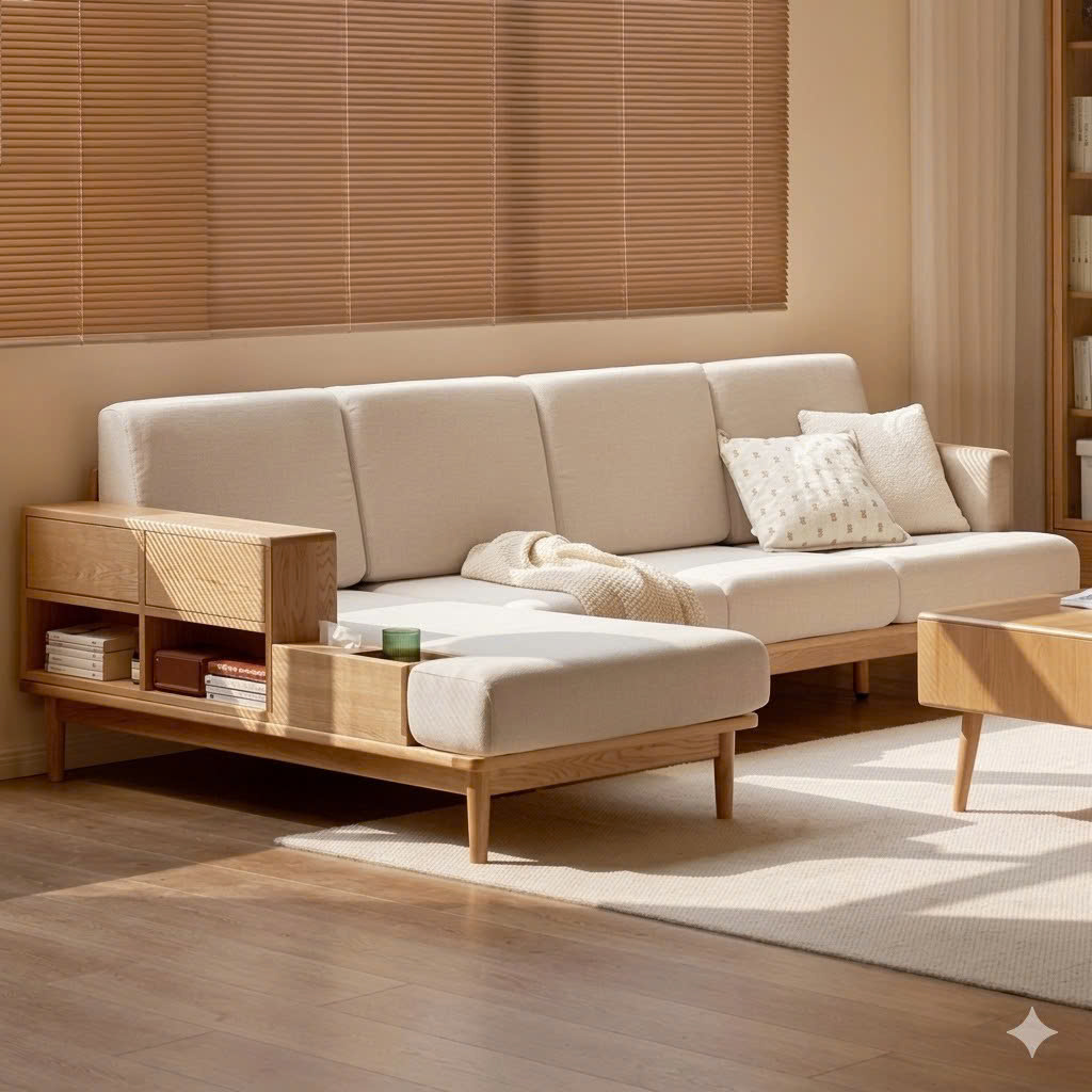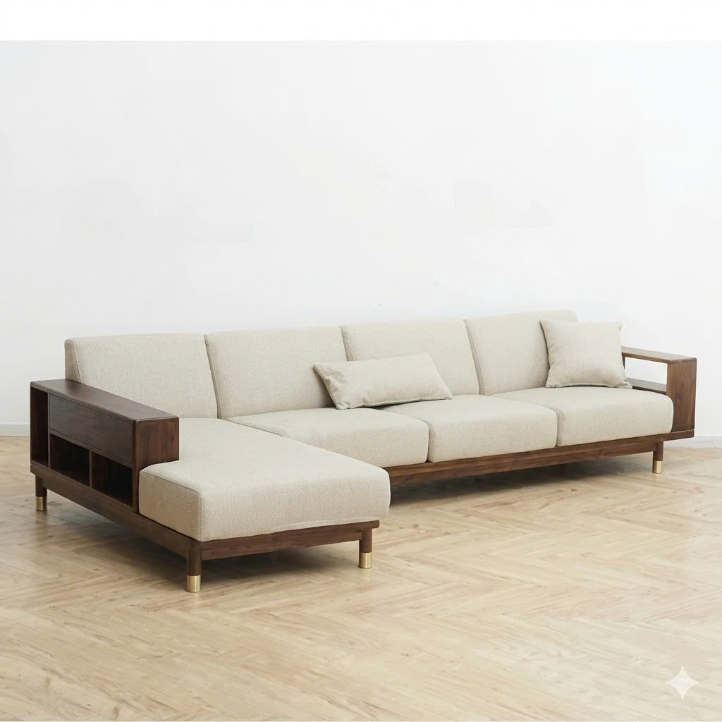 Sofa Góc Gỗ Tự Nhiên VS139 Cao Cấp – Sofa Phòng Khách Khung Gỗ Uốn Cong Sang Trọng, Đệm Da/Nỉ Êm Ái Phong Cách Hiện Đại