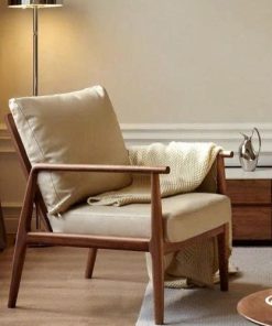 4️⃣ Ghế thư giãn gỗ nệm kem