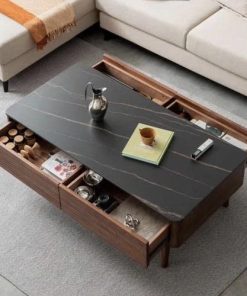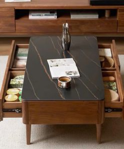 2️⃣ Bàn trà gỗ mặt gỗ hoặc đá ceramic /nhiệt