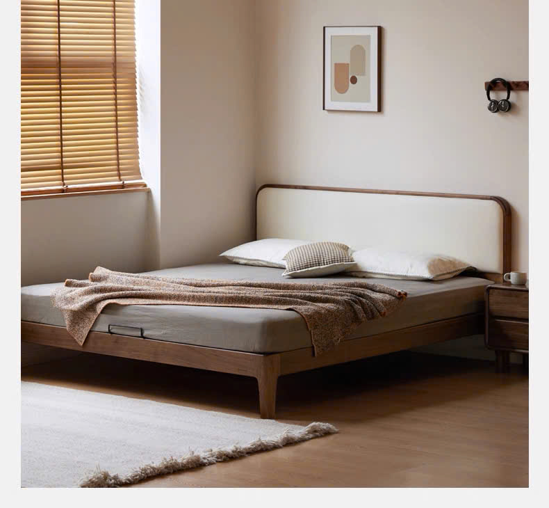 + Giường ngủ gỗ tự nhiên – Kiểu dáng hiện đại, chắc chắn, giúp giấc ngủ êm ái và thoải mái