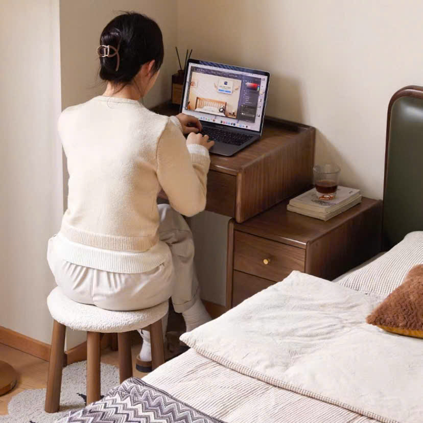 + Tab đầu giường gỗ mini – Nhỏ gọn, có ngăn kéo tiện lợi, để đèn ngủ, sách, đồ cá nhân.