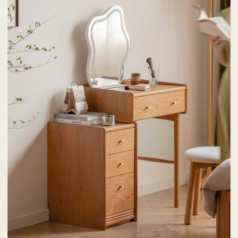 + Bàn trang điểm gỗ xếp gọn có gương kèm ghế – Gọn gàng, đa chức năng ,nhiều ngăn kéo, dễ sắp xếp mỹ phẩm & phụ kiện