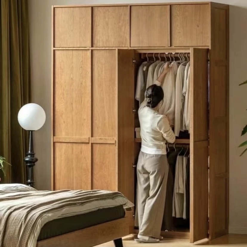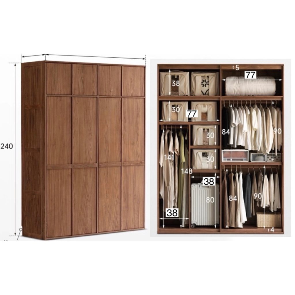 + Tủ quần áo gỗ 4 cánh + kệ để đồ tiện lợi – Thiết kế đơn giản nhưng đa năng dung tích lớn chứa được nhiều đồ