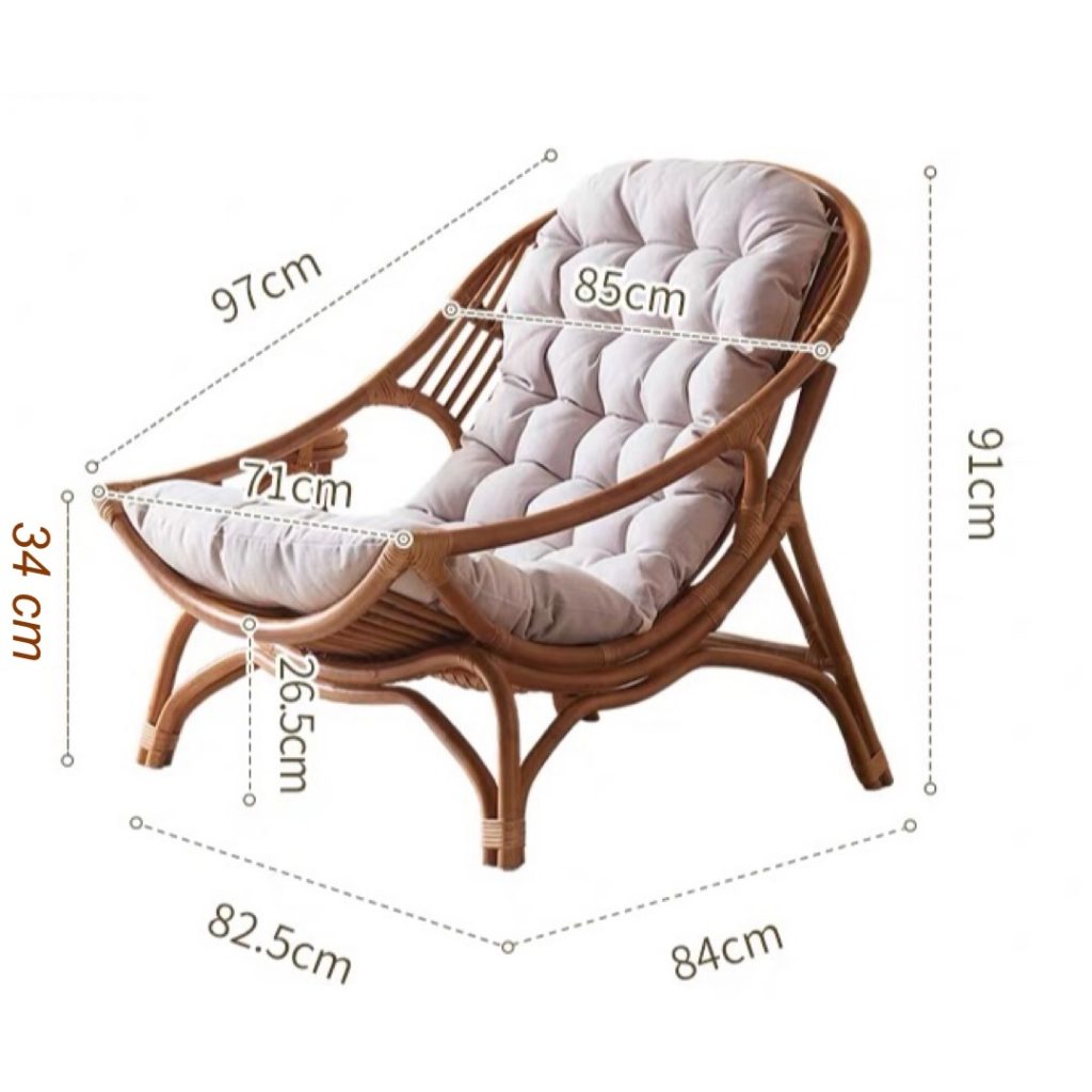 * Ghế mây VSM16 nổi bật với thiết kế đơn giản mềm mại, đan mây thủ công tinh tế, chân tựa, lưng chắc chắn mang phong cách vintage – boho – Scandinavian. Mẫu ghế không chỉ để ngồi thư giãn mà còn là món decor nâng tầm không gian sống.