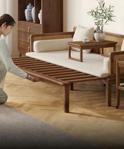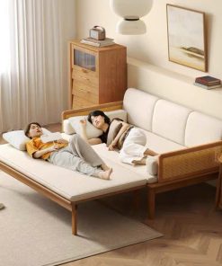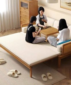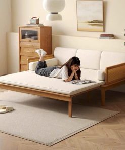 Sofa giường gỗ thông minh 2 trong 1, chuyển đổi linh hoạt từ sofa tiếp khách sang giường ngủ rộng rãi chỉ trong vài giây. Khung gỗ tự nhiên chắc chắn, kiểu dáng tối giản, tinh tế – phù hợp phòng khách, phòng ngủ, căn hộ nhỏ, homestay.