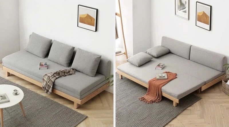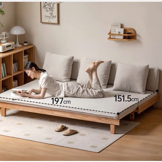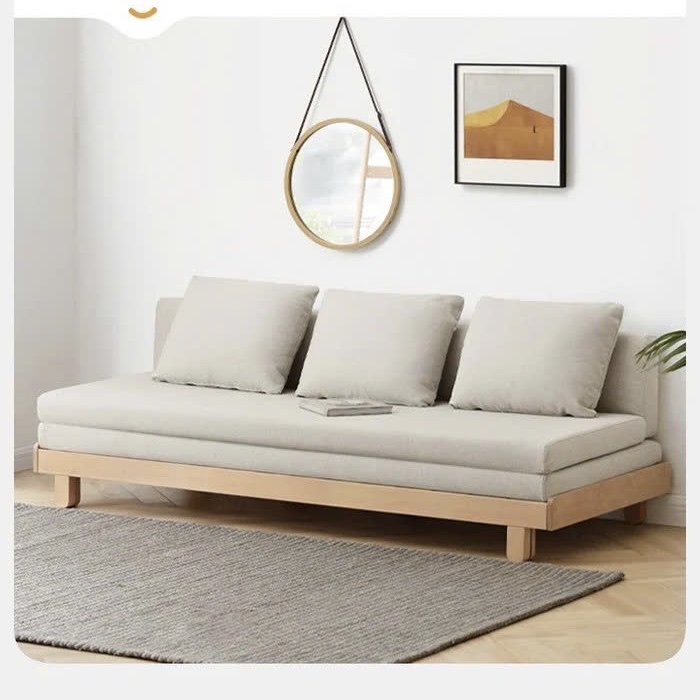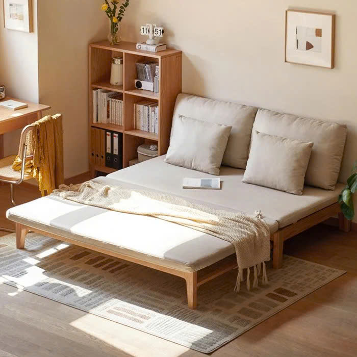 Sofa giường gỗ thông minh 2 trong 1, chuyển đổi linh hoạt từ sofa tiếp khách sang giường ngủ rộng rãi chỉ trong vài giây. Khung gỗ tự nhiên chắc chắn, kiểu dáng tối giản, tinh tế – phù hợp phòng khách, phòng ngủ, căn hộ nhỏ, homestay.