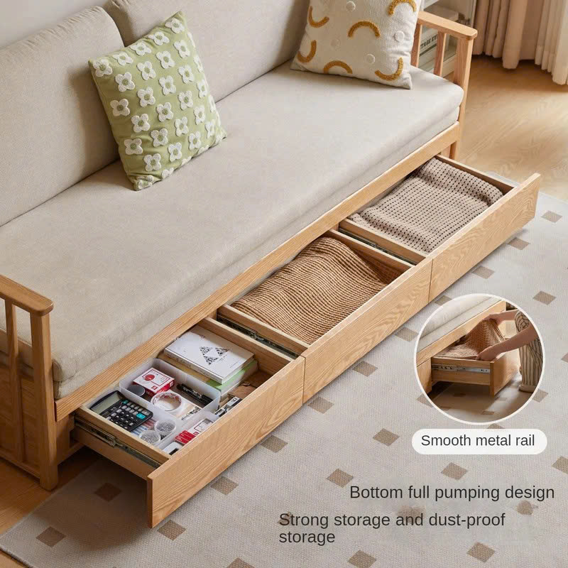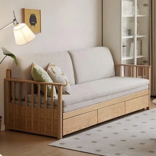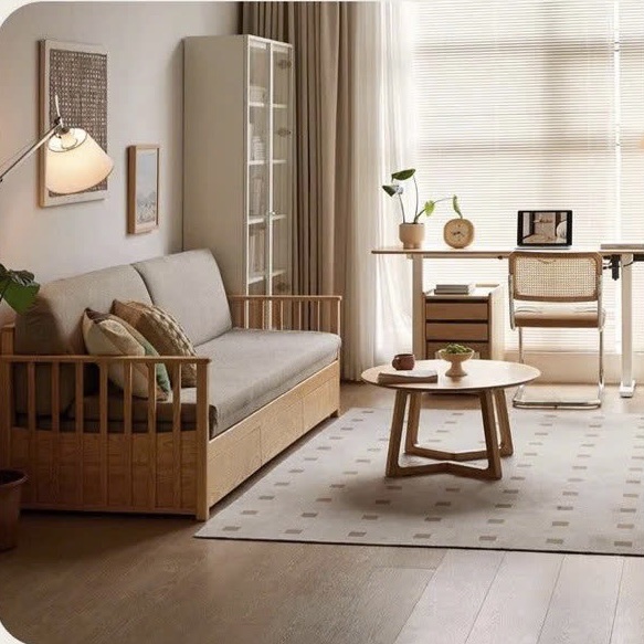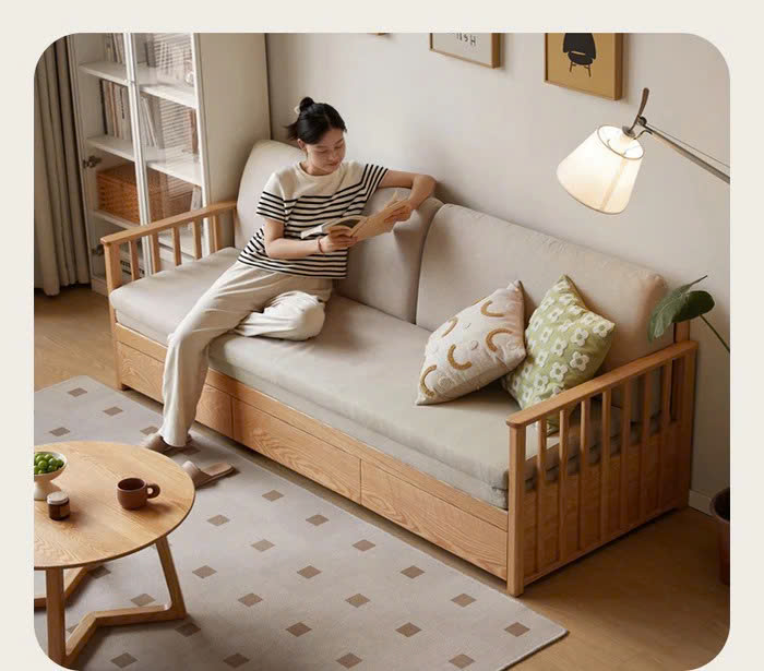 Sofa giường gỗ thông minh 2 trong 1, chuyển đổi linh hoạt từ sofa tiếp khách sang giường ngủ rộng rãi chỉ trong vài giây. Khung gỗ tự nhiên chắc chắn, kiểu dáng tối giản, tinh tế – phù hợp phòng khách, phòng ngủ, căn hộ nhỏ, homestay.