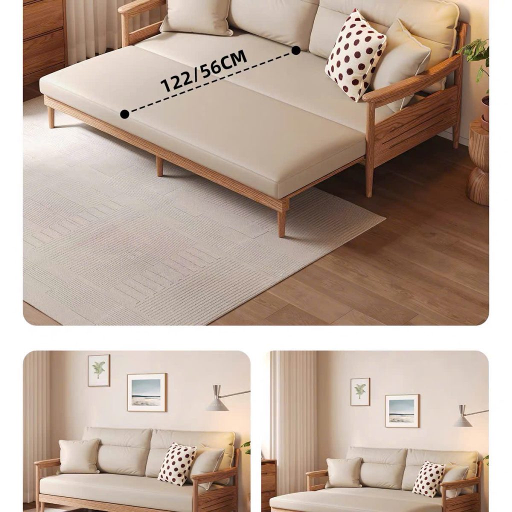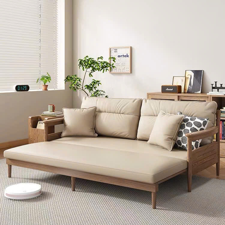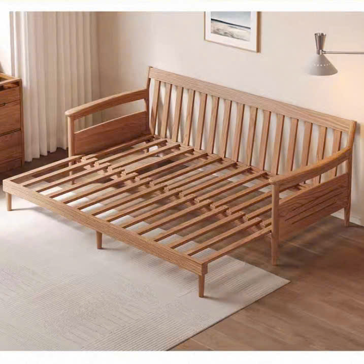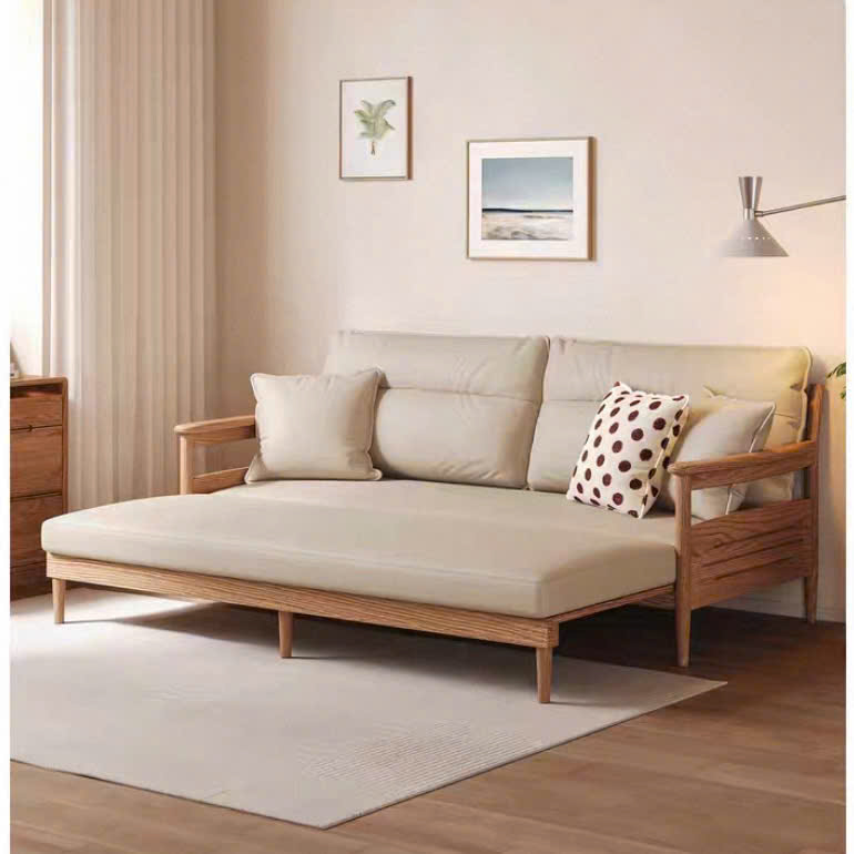 Sofa giường gỗ thông minh 2 trong 1, chuyển đổi linh hoạt từ sofa tiếp khách sang giường ngủ rộng rãi chỉ trong vài giây. Khung gỗ tự nhiên chắc chắn, kiểu dáng tối giản, tinh tế – phù hợp phòng khách, phòng ngủ, căn hộ nhỏ, homestay.