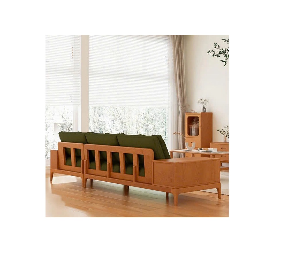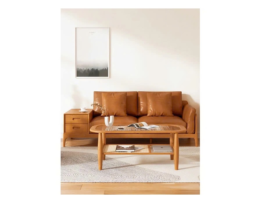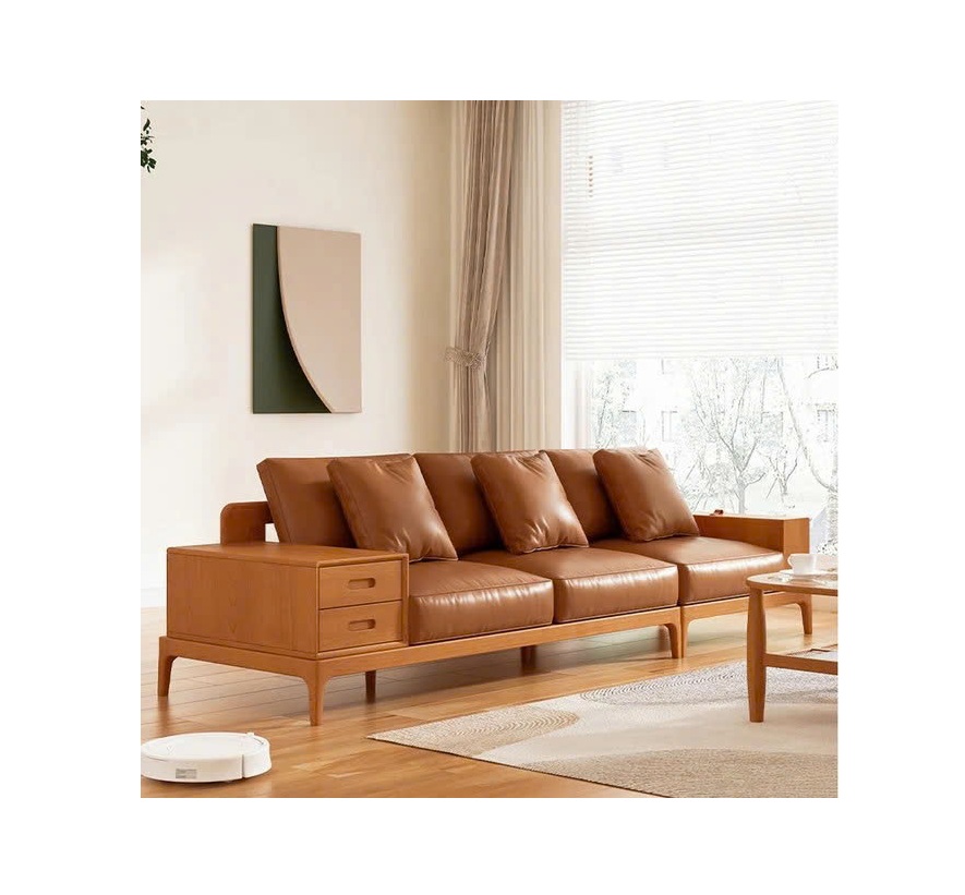 Sofa Gỗ VS70 Kèm Hộc Tủ – Sofa Gỗ Tự Nhiên Phòng Khách, Ghế Sofa Đệm Da Cao Cấp Hiện Đại