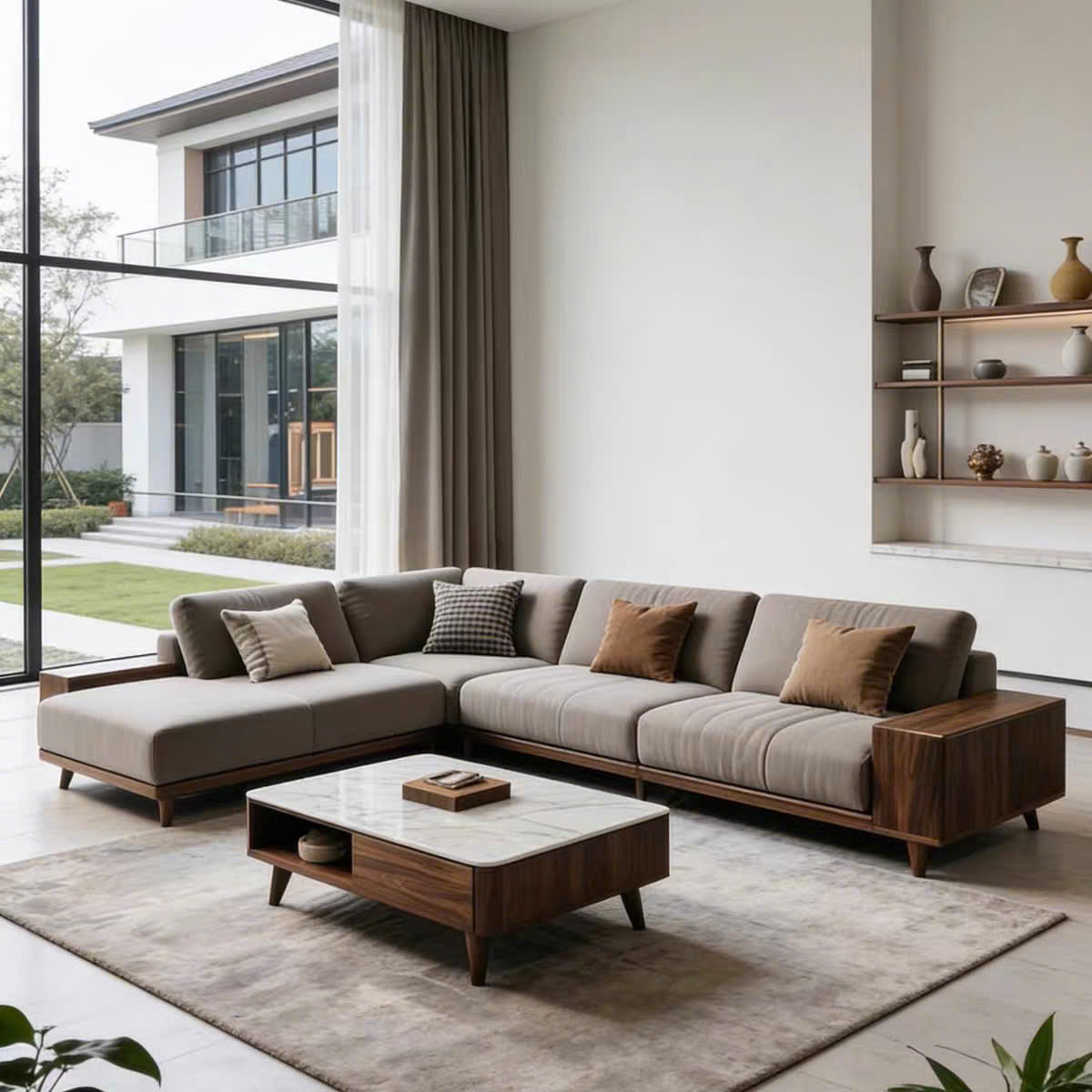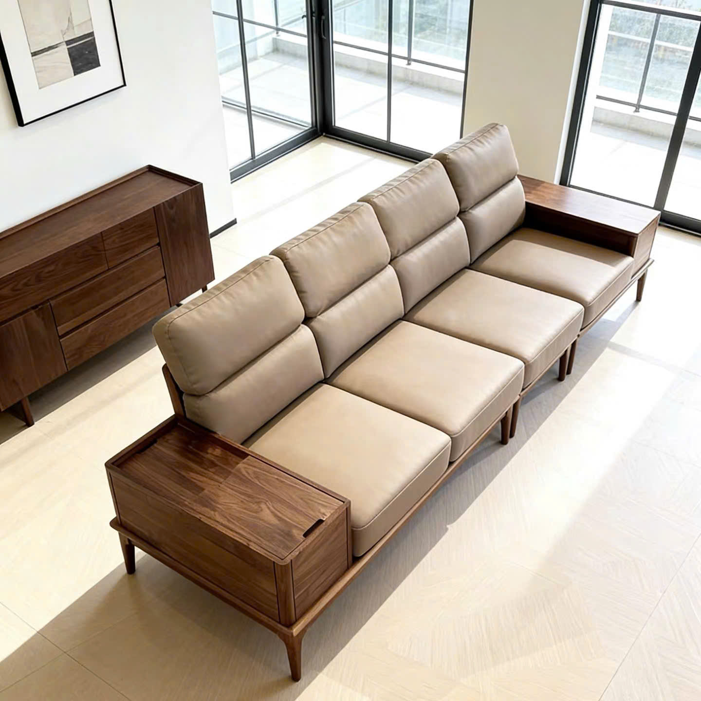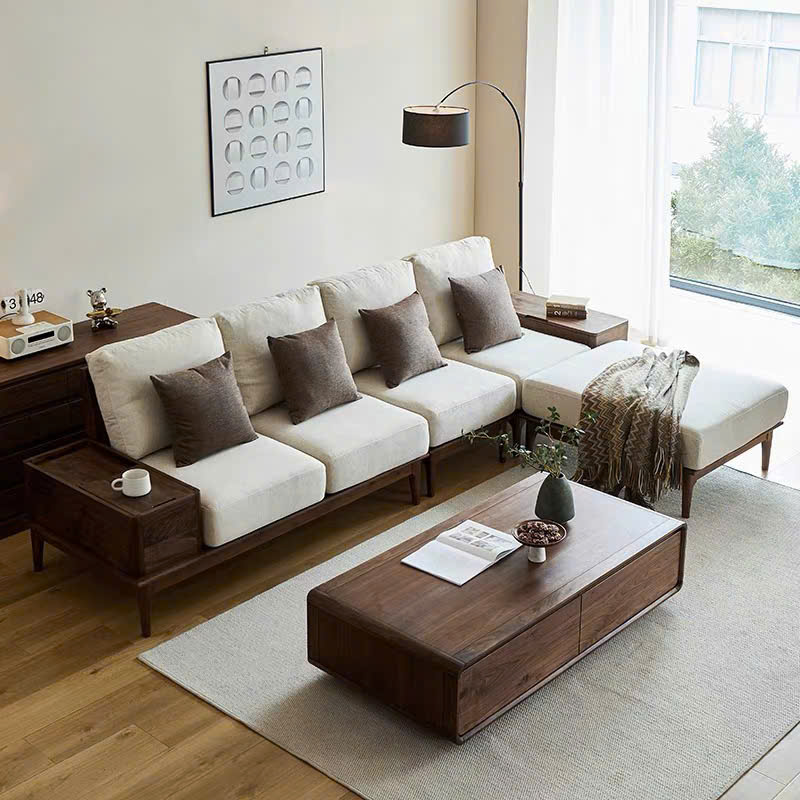 Sofa góc Gỗ VS71 Kèm Hộc Tủ – Sofa Gỗ Tự Nhiên Phòng Khách, Ghế Sofa Đệm Da Cao Cấp Hiện Đại