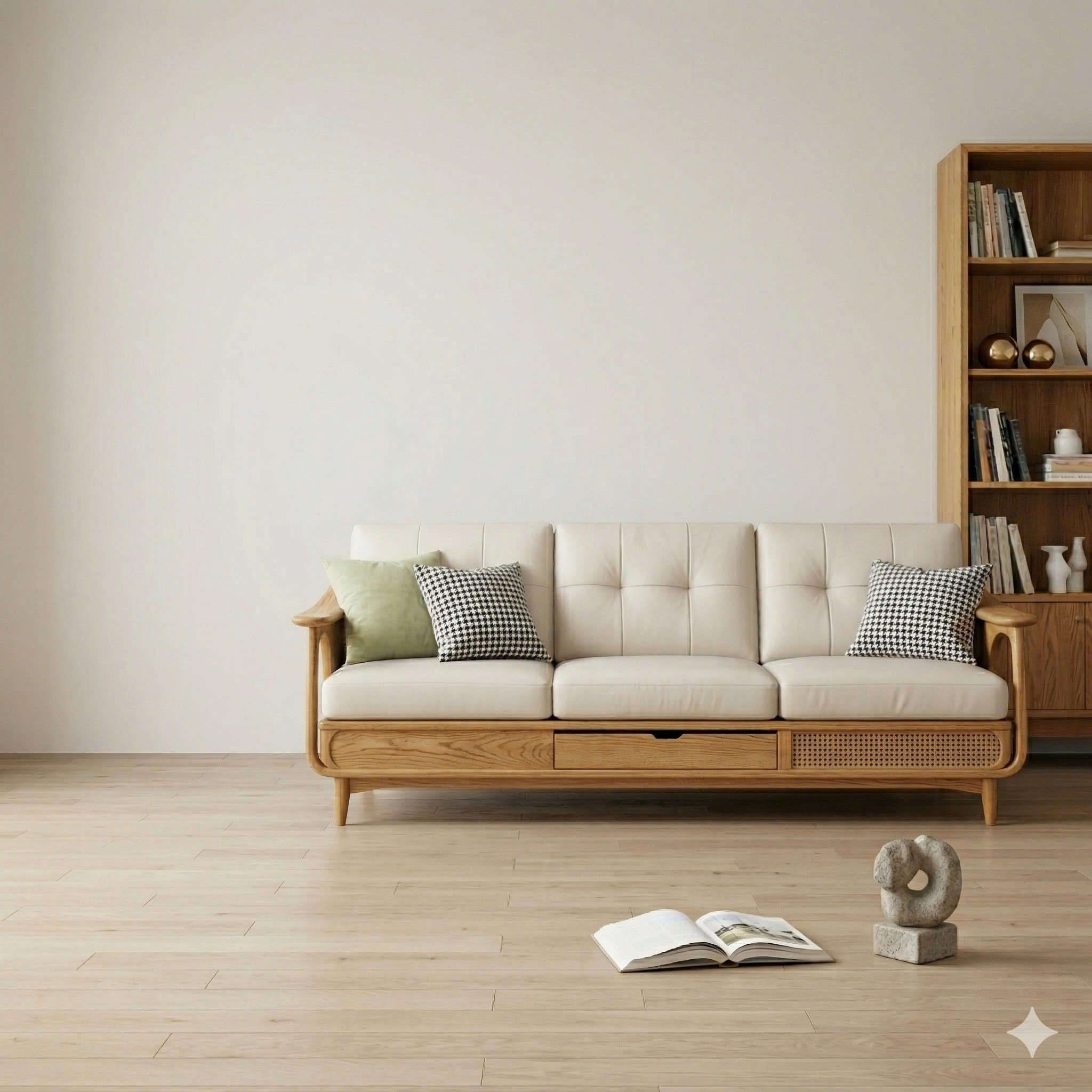 >>Sofa gỗ VS98 là mẫu sofa cao cấp dành cho không gian sống hiện đại, nổi bật với thiết kế tinh giản nhưng sang trọng. Khung sofa được làm từ gỗ tự nhiên chắc chắn, bền bỉ theo thời gian, kết hợp cùng phần đệm da nỉ cao cấp mang lại cảm giác êm ái, dễ vệ sinh và cực kỳ đẳng cấp.
