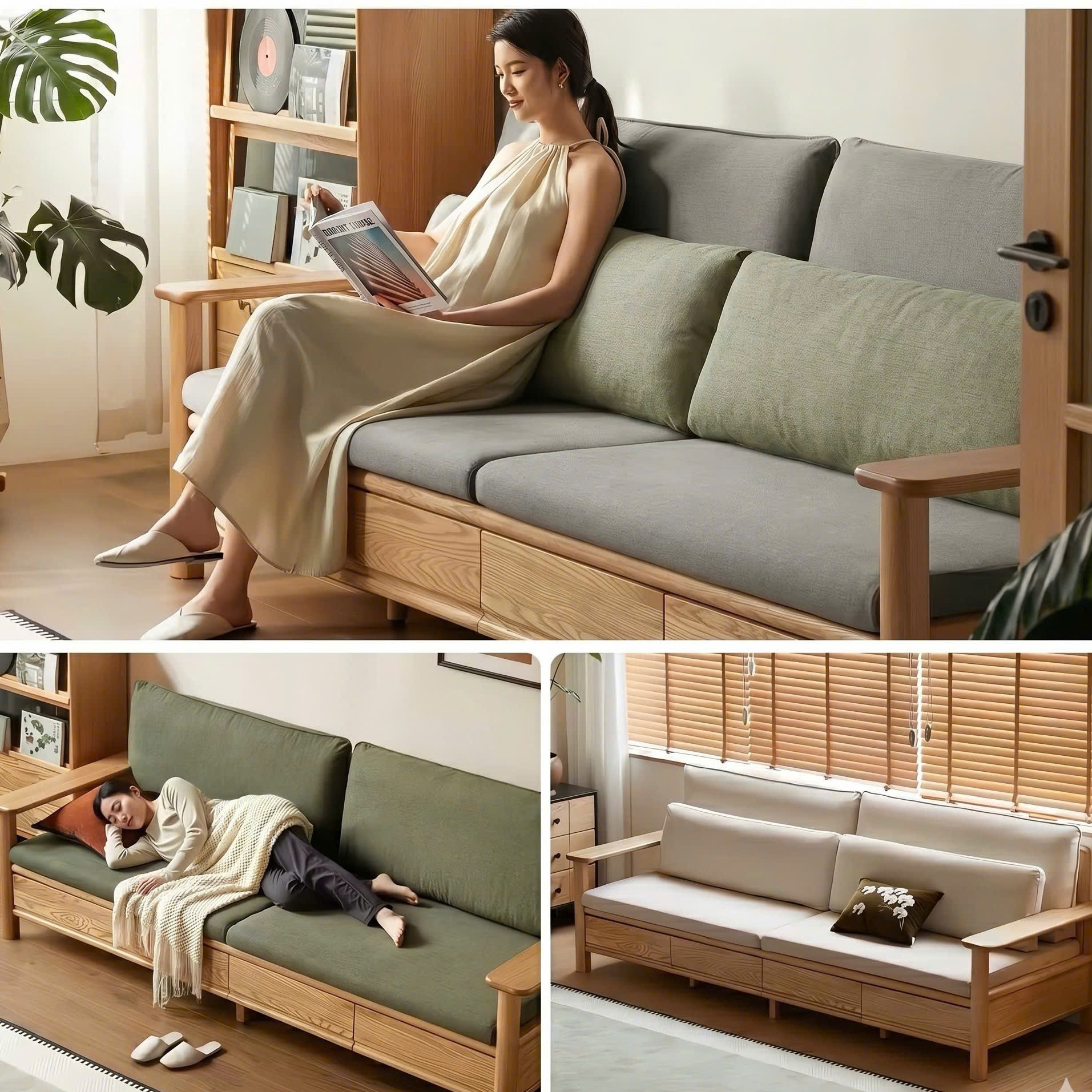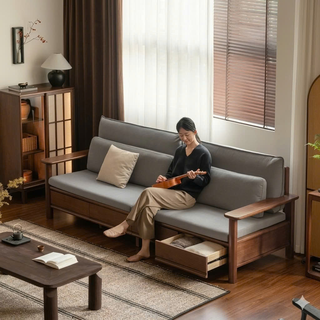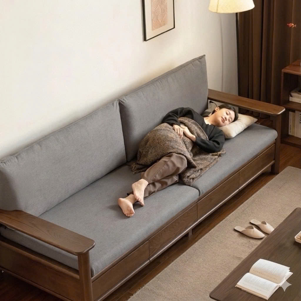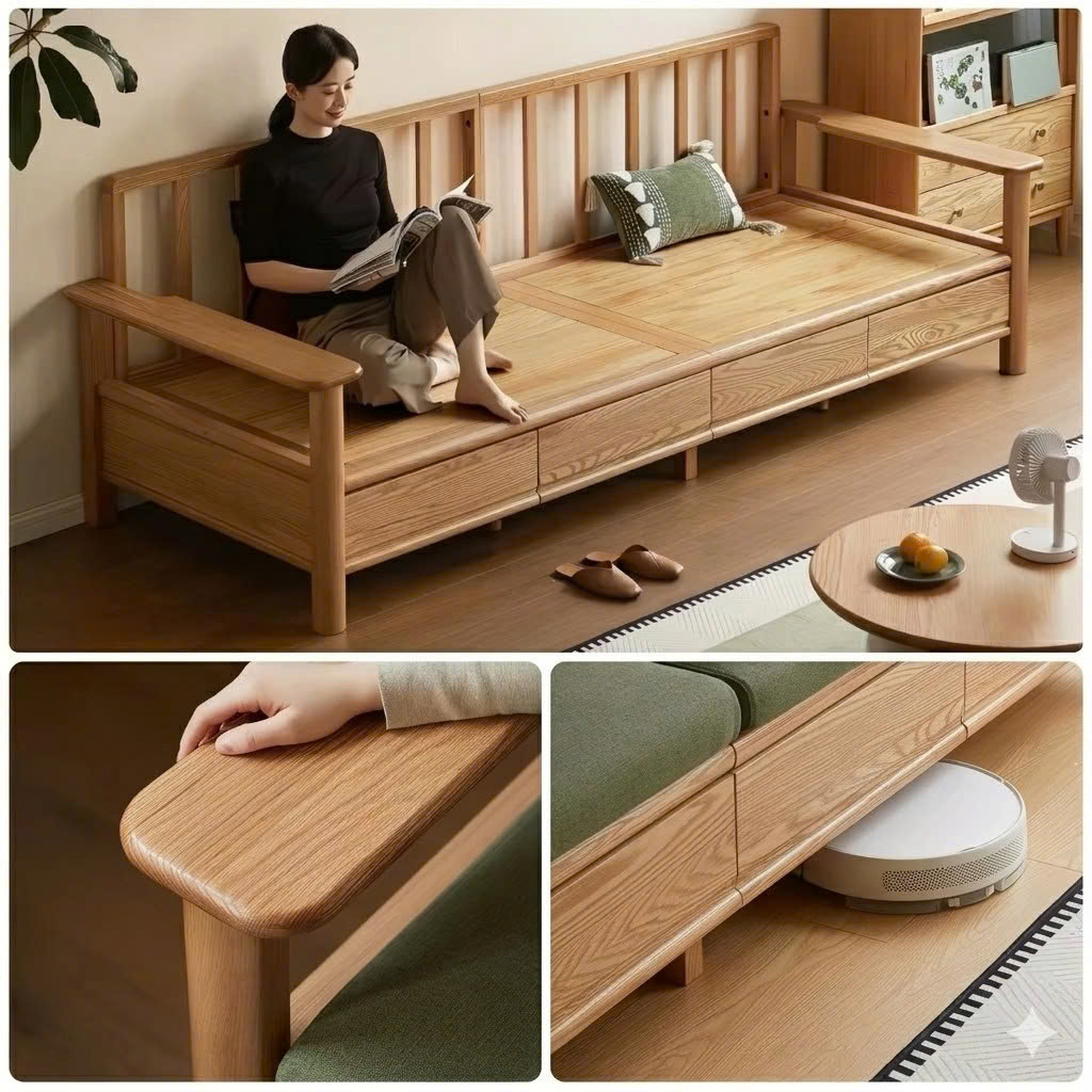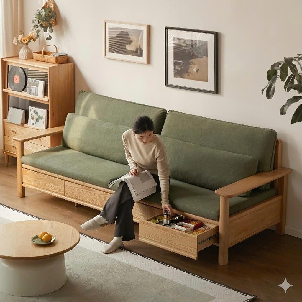Sofa Gỗ Tự Nhiên VS131 Cao Cấp – Sofa Phòng Khách Khung Gỗ Kết Hợp Ngăn Kéo Sang Trọng, Đệm Da/Nỉ Êm Ái Phong Cách Hiện Đại
