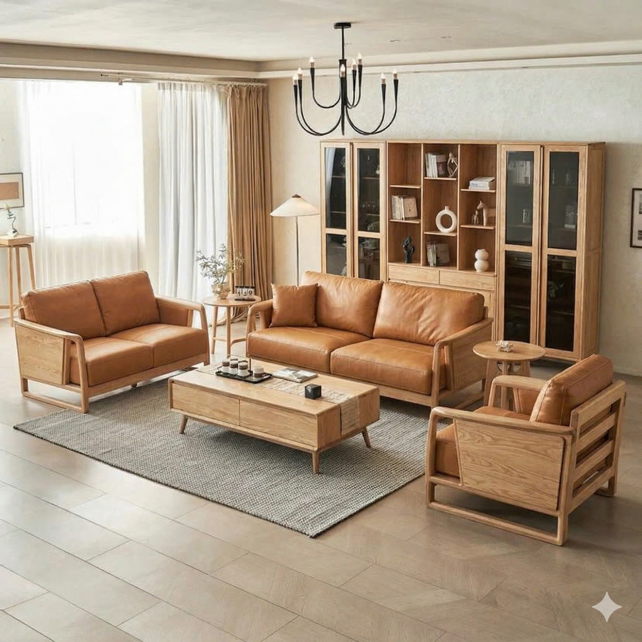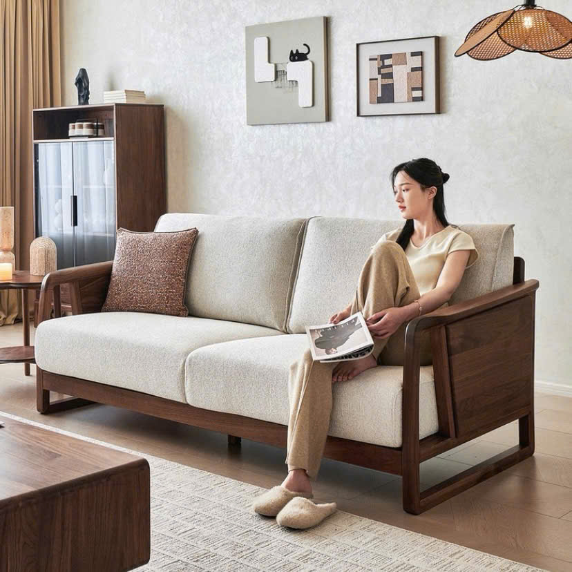 Sofa Gỗ Tự Nhiên VS100 Cao Cấp – Sofa Phòng Khách Khung Gỗ Uốn Cong Sang Trọng, Đệm Da/Nỉ Êm Ái Phong Cách Hiện Đại
