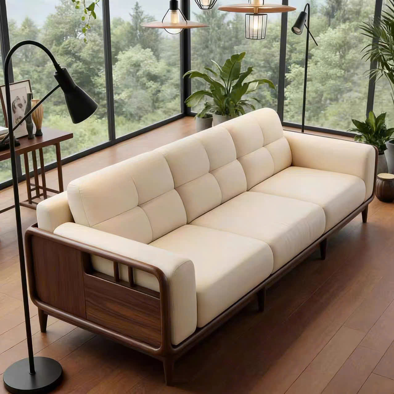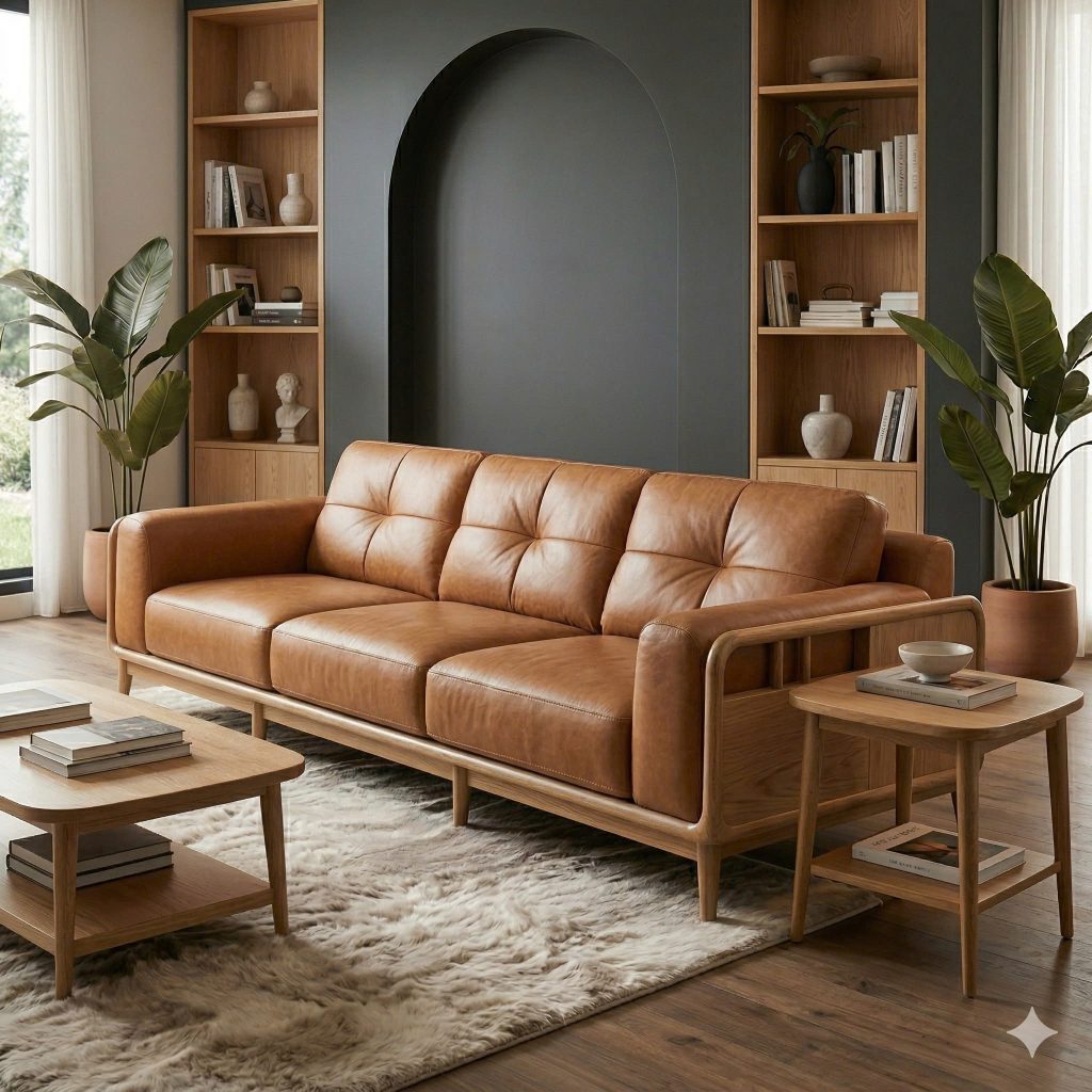 Sofa Gỗ Tự Nhiên VS109 Cao Cấp – Sofa Phòng Khách Khung Gỗ Uốn Cong Sang Trọng, Đệm Da/Nỉ Êm Ái Phong Cách Hiện Đại !