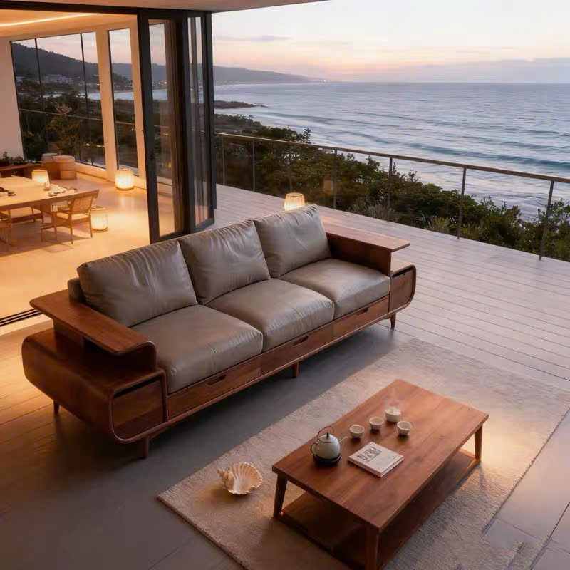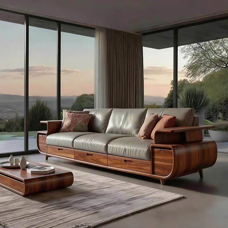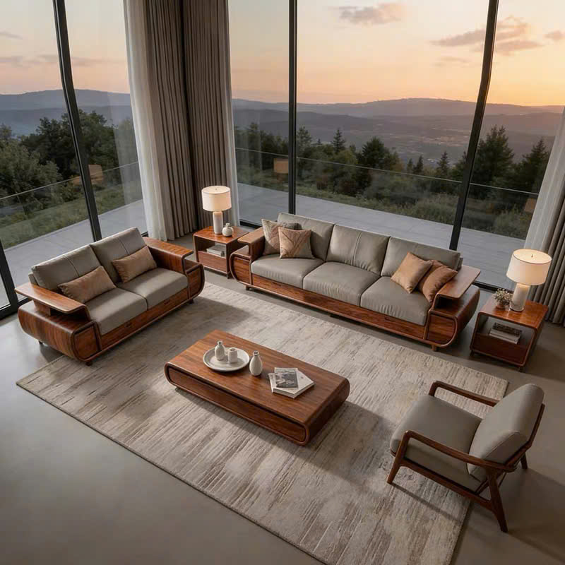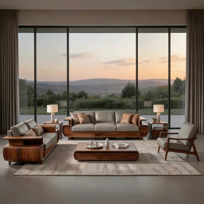 Sofa Gỗ Tự Nhiên VS122 Cao Cấp – Sofa Phòng Khách Khung Gỗ Uốn Cong Sang Trọng, Đệm Da/Nỉ Êm Ái Phong Cách Hiện Đại