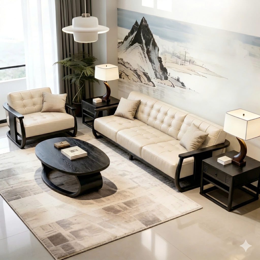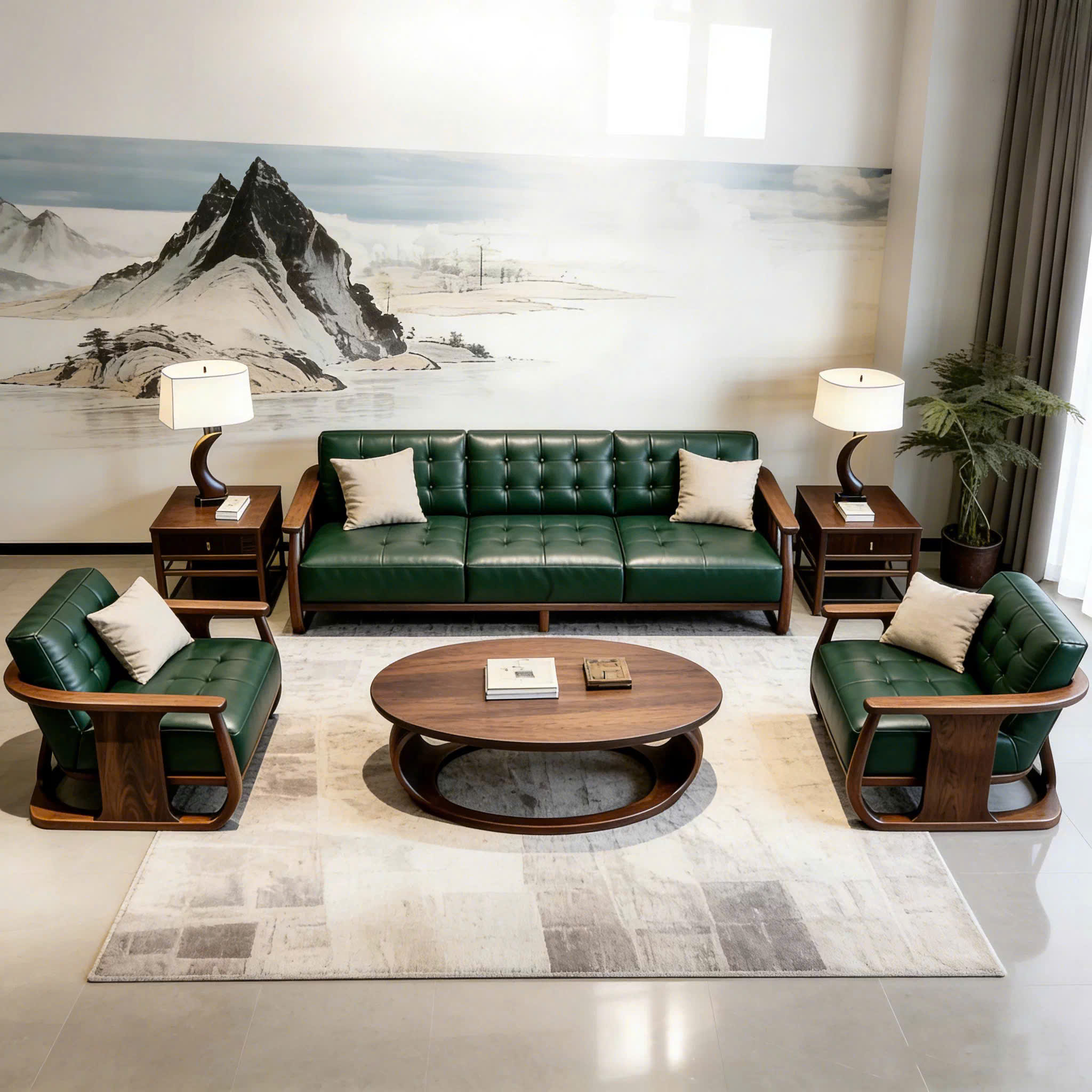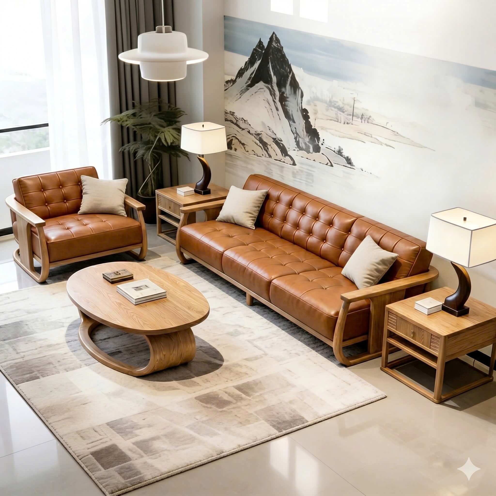 Sofa Gỗ Tự Nhiên VS126 Cao Cấp – Sofa Phòng Khách Khung Gỗ Uốn Cong Sang Trọng, Đệm Da/Nỉ Êm Ái Phong Cách Hiện Đại